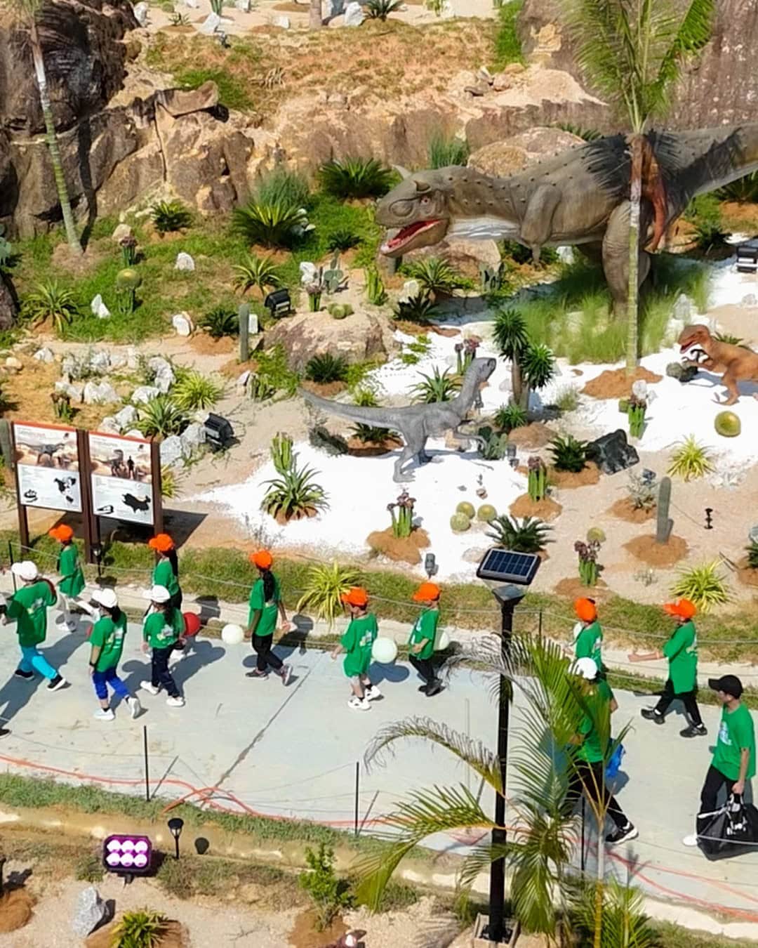 The dinosaur park is located within Monkeys Canopy and it spans around 11 acres — that’s the size of around eight football fields — making it the largest dinosaur park in Southeast Asia.