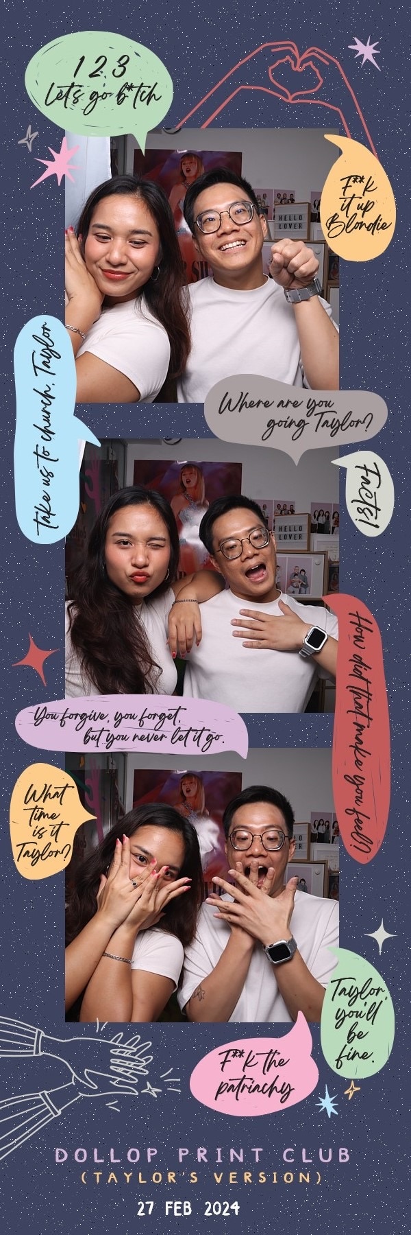The Taylor Swift Photo Booth is available at all Dollop photobooths islandwide and feature Taylor-inspired photo strips including popular eras like Reputation, 1989 and more. Each session will cost just S$10 and you can choose to have it printed on two photo strips or on a single 4R photo print. Hopefully these don’t end up being just another picture to burn.