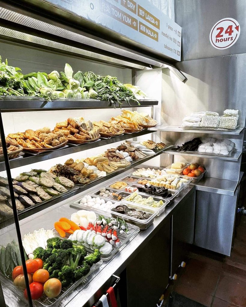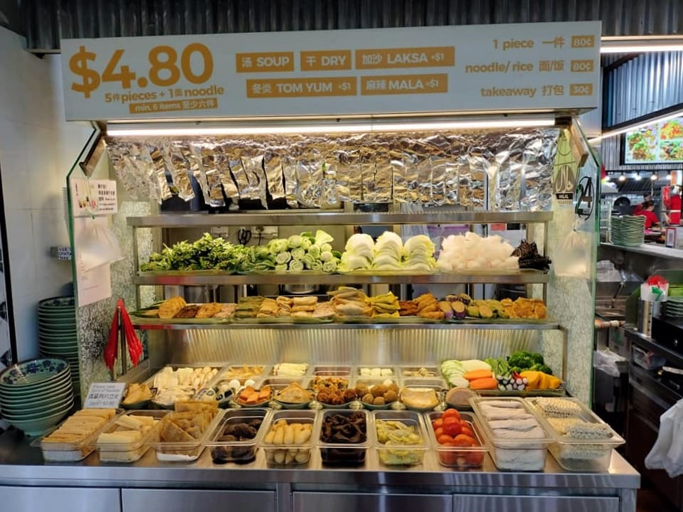 Take your pick from the extensive buffet-style selection of fresh ingredients, which include the likes of vegetables, stuffed chillies, beancurd, and fish paste, all priced at S$0.80 each (a la carte).