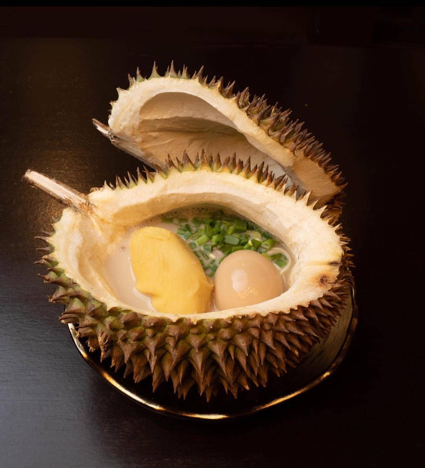 At just 40RM (~S$11.90), you can expect to find springy noodles in pork bone broth with fresh durian flesh mixed into it. It’s served in a durian husk, and topped with a D13 seed, chashu, and a Japanese soft-boiled egg. NGL, I’m not quite sure how to feel about this!