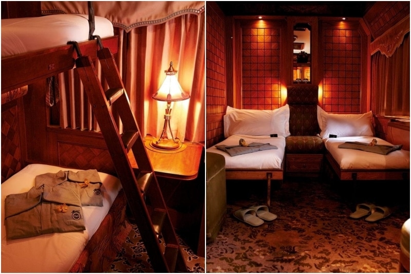 Your dedicated 24-hour butler will welcome you into the luxurious green and gold carriages oozing timeless charm and decked in cherrywood panelling, lavish Thai silks and Malaysian embroidery.