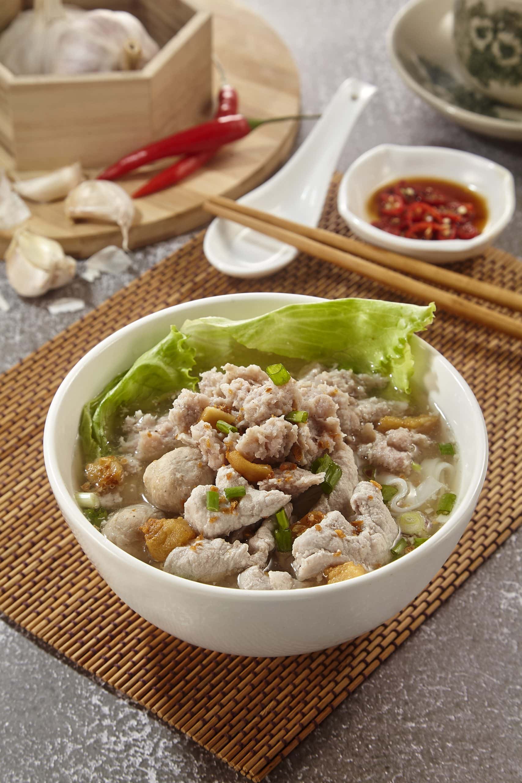 Uncle Beh’s Signature Pork Noodle Combo (S$10.80) is available in both soup and dry versions. Each bowl is served with ingredients like minced pork, pork liver, pork slices, pork loin, and lard, with your choice of carbs, like bee hoon, mee tai mak, and yellow noodles.