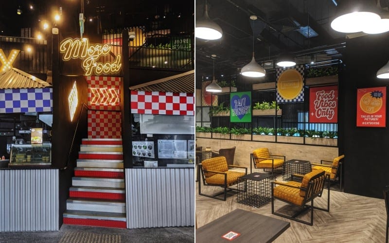Featuring over 17 stalls, this bustling food hall spans 2 storeys. The vibes feel like an atas cafe-food court hybrid fitted with vibrant colours and eye-catching neon lights.