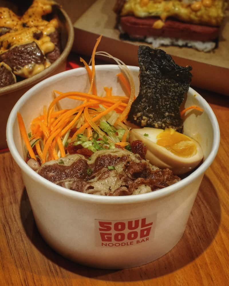 One special stall here is Soul Good Noodle Bar, done in collaboration with popular private dining and donut company Mixsense. Their mission whip up bougie instant noodles to tie in with the Slurping Good! experiential playground opening soon right beside Eatbox.