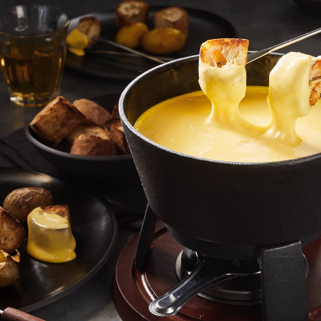 Cuddle up with your boo over a Fondue Dinner For Two (S$82) on Sunday evenings from 5pm–9.30pm. You get an assortment of crusty sourdough loaf, baby potatoes, gherkins, and pearl onions to be dipped into an authentic Swiss cheese fondue prepared with gruyere, emmentaler, and appenzeller cheese.