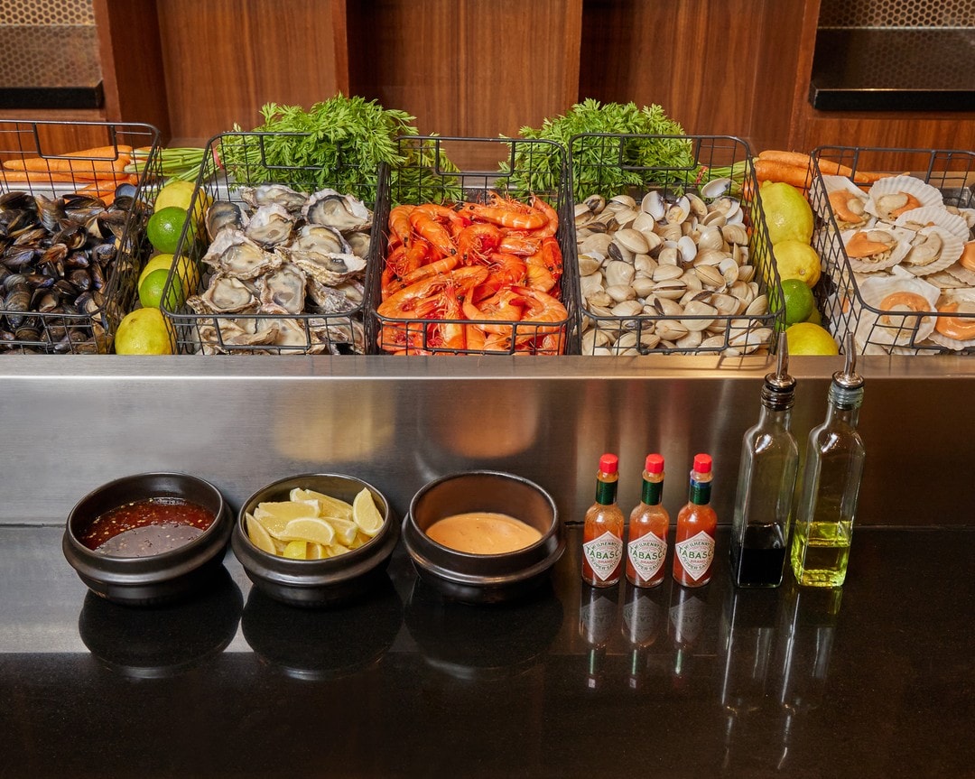 Embark on a gastronomical journey with all-you-can-eat seafood from the Crustaceans Bar, including Alaska Crab Leg, Oyster, Half Shell Scallop, Slipper Lobster, and more.