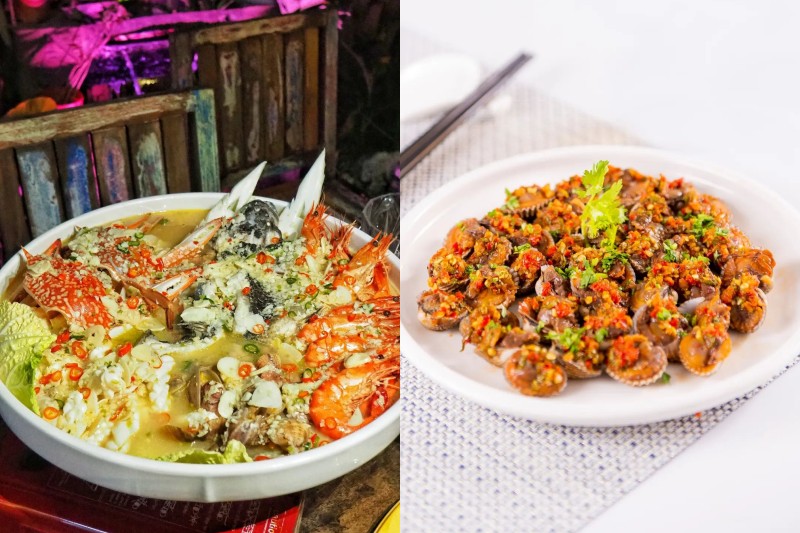 The restaurant is perfect for any seafood lover, offering a selection of lobsters, crabs, shellfish, and more. But if you can’t pick just one, get the Seafood Treasure Pot (price depends on the ingredients you choose!), which is absolutely huge and filled with five types of seafood. Dig into flower crabs, prawns, squid, fish, and clams, all cooked in a garlic and lemon Thai broth.