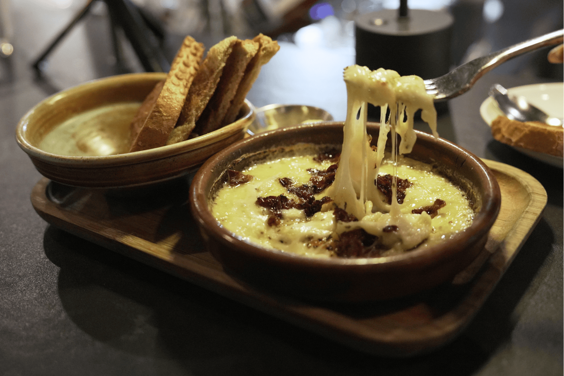 We started off with the Toasted Sourdough (S$6) and Raclette Cheese with Crispy Bacon (S$18). The bread was crispy, which paired perfectly with the melted cheese and butter.