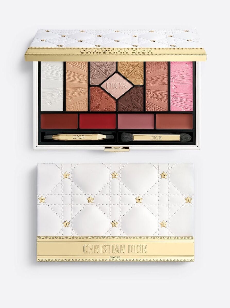 Although quite a few of Dior’s holiday sets have sold out, a number of standout items remain. For example, Dior’s limited edition multi-use makeup palette. Adorned with a gold star-studded cannage motif and the Christian Dior Paris signature, the palette contains 12 signature makeup shades. Two golden double-sided brush applicators are also included for smooth powder application.
