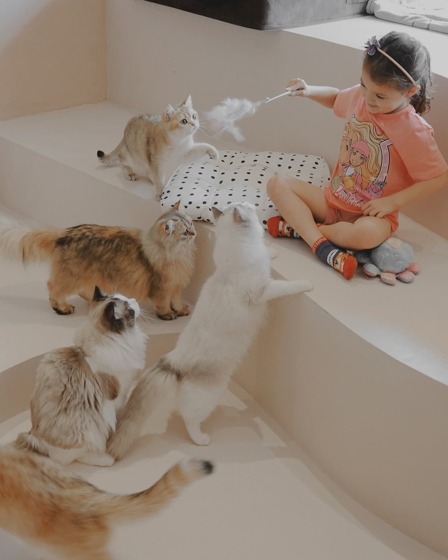Fun fact: all the cats here have been handpicked by trusted breeders all the way in Italy and the UK — posh or whatever. The cafe space has also incorporated some catifications to make it a safe and fun place for both humans and kitties.
