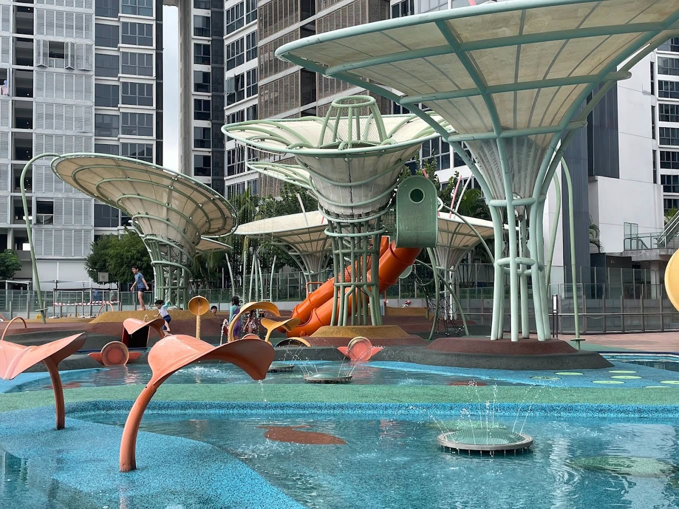 This is another water park in the midst of a neighbourhood. There are multiple splash elements like a spray tunnel, mini splashing bucket, dragonfly spray fountain, as well as many water fountains around the playgrounds.