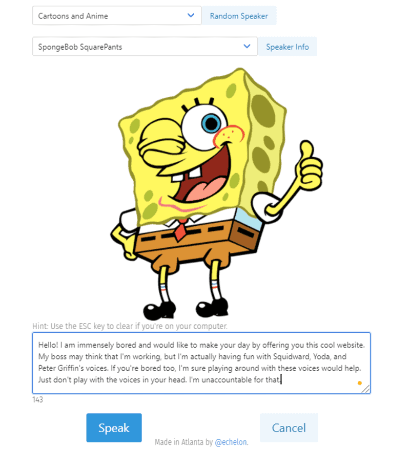 If no one has been celebrating your hard work in the office, consider visiting vo.codes, a website that allows you to choose your favourite character and speak whatever you’d like. Tell yourself that you’ve done a good job through Spongebob or Yoda’s voices, or make Bill Gates speak some words of enlightenment to make yourself feel better.