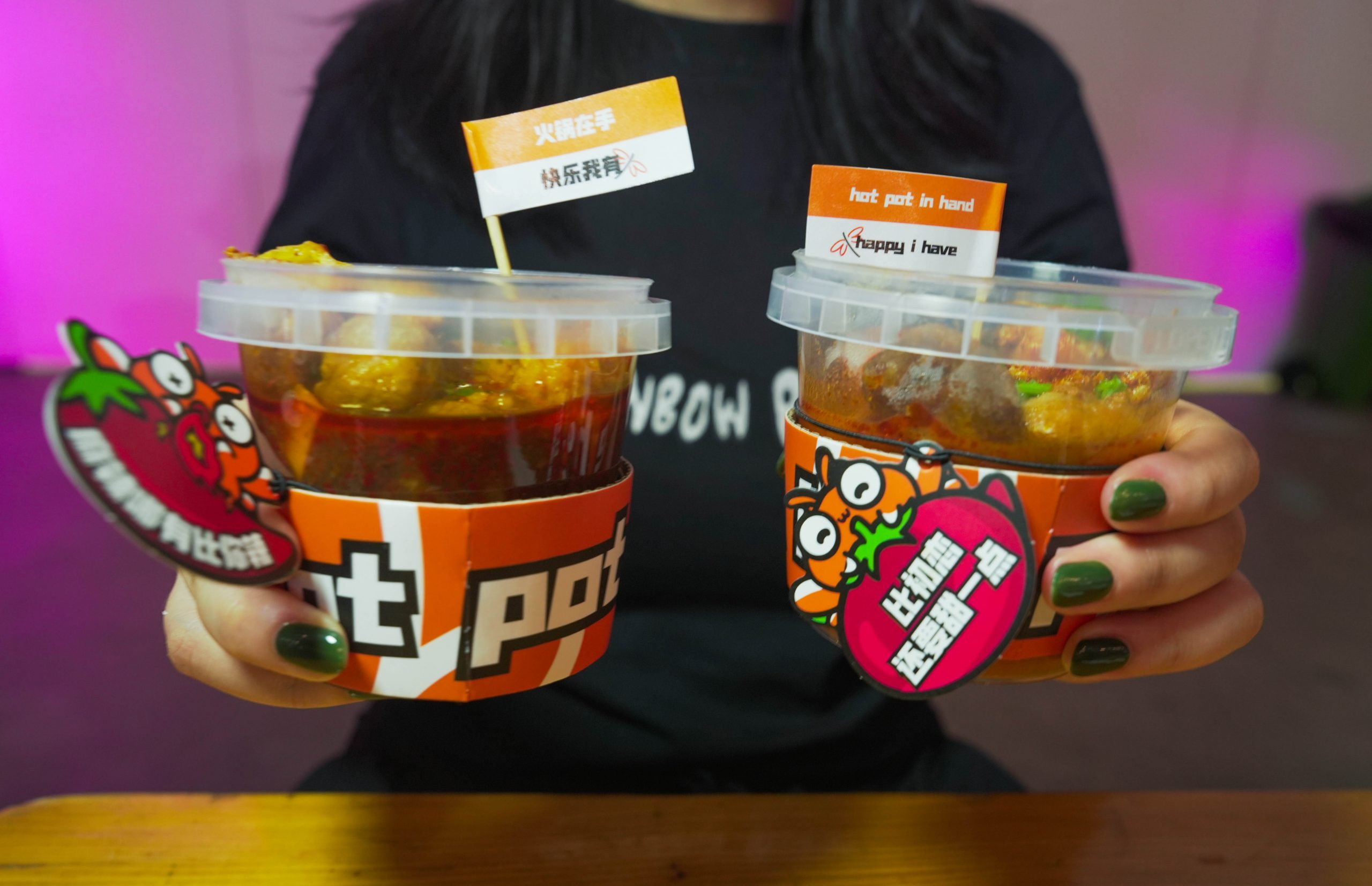 You’ll probably see many visitors walking around with plastic cups of mala hotpot from vendors like No Time Hot Pot. Go for the Mala or Tomato No Time Mini Anyhow (S$6.80), that’s chock full of ingredients like smashed pork ball and shabu shabu, crispy tau pok, broccoli, and black fungus.