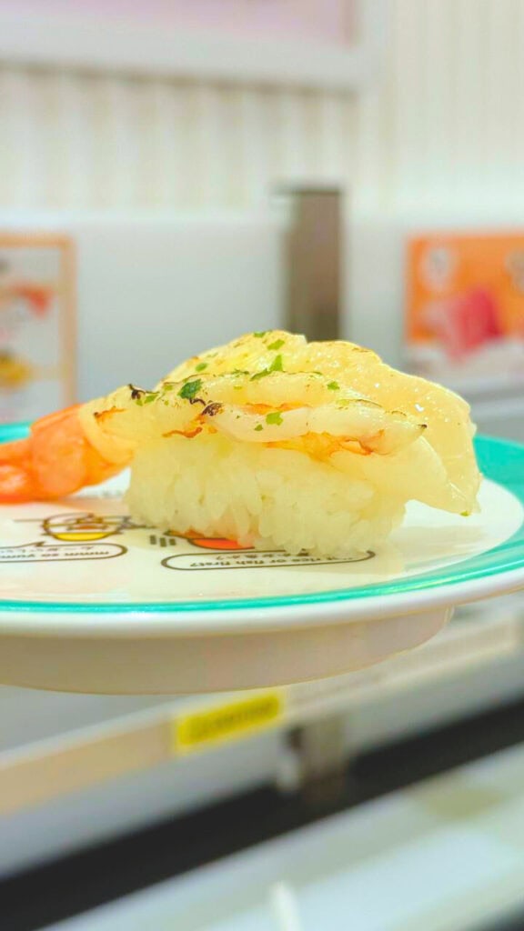 Lastly, the Akaebi Garlic Butter Dai Man Zoku immediately caught my attention the moment it glided down the conveyor belt. The thick, juicy shrimp, seasoned in butter and garlic, rested enticingly on a bed of fluffy Japanese rice.