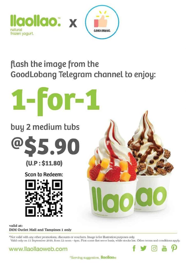 GoodLobang’s Telegram subscribers were exclusively entitled to 1-for-1 medium tubs of llaollao. Even for non-subscribers, the deal could be redeemed by simply joining GoodLobang’s Telegram Channel.