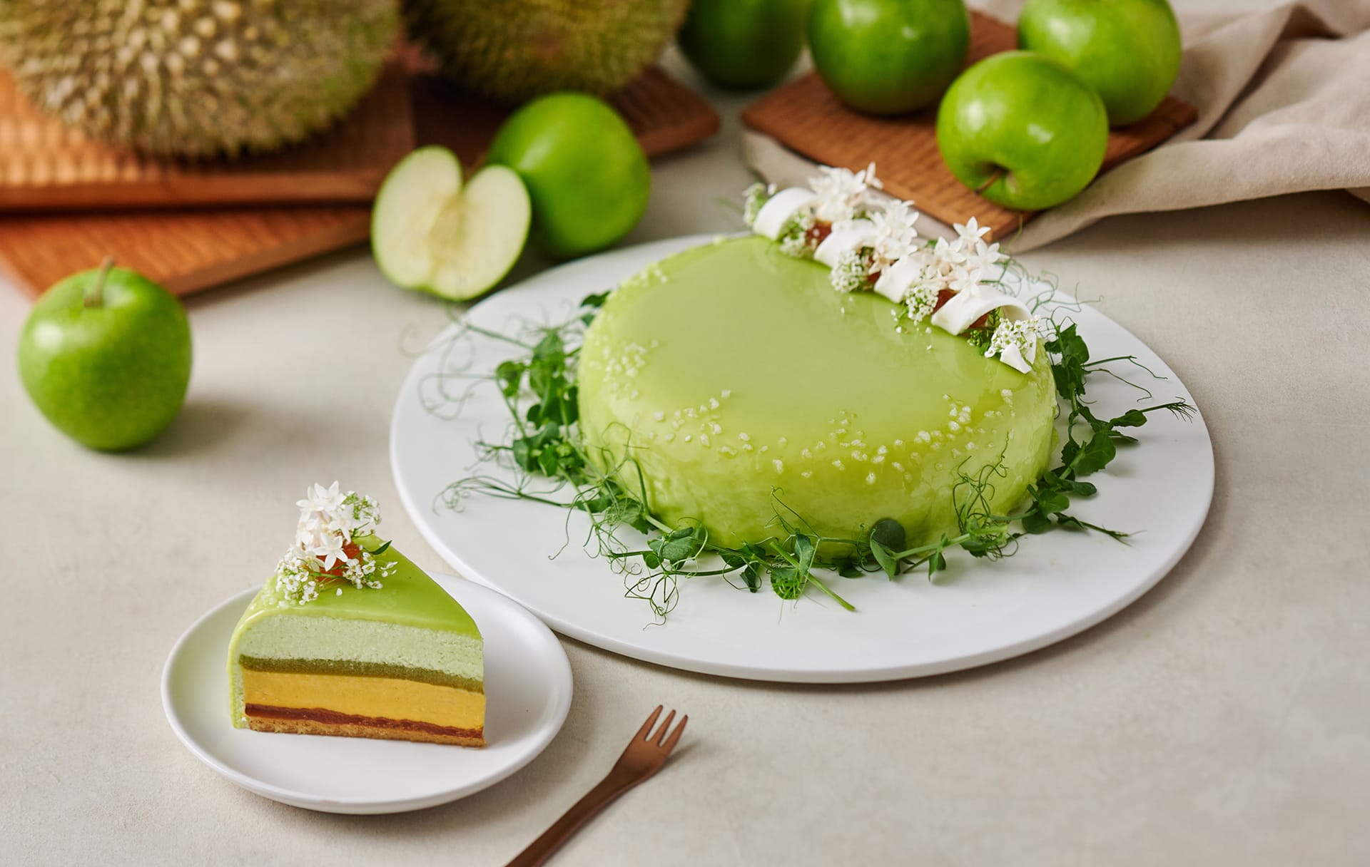 Probably the most intriguing creation taking the stage at Goodwood Park Durian Fiesta 2024 is the D24 Granny Smith Mousse Cake (S$20 per slice). Yes, that’s right, the mousse cake will feature the unique pairing of Granny Smith apples and D24 durian encased within an apple glaze. I’ve never heard of apples and durian being paired together, but boy am I interested to see how this turns out!