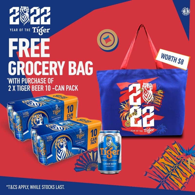 Your alcohol stash for the evening is also covered with Drinkies, and you’ll also receive a free Tiger Grocery Bag worth S$8 when you purchase two Tiger 10s Pack. And spoken like a true party enthusiast, the Lunar New Year and its celebrations have become almost synonymous with booze and card games — so you know that the party isn’t anywhere complete without alcohol.