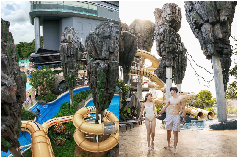 Then head to the Flying Rock Zone (resembling something out of Avatar) that’s perfect for the kiddos and the young at heart with a Fun Pool, Playground and Giant Slides including an 8-meter slide tower, splash tower, splash sides and more. There’s also an outdoor playground with a sandpit and trampoline too!