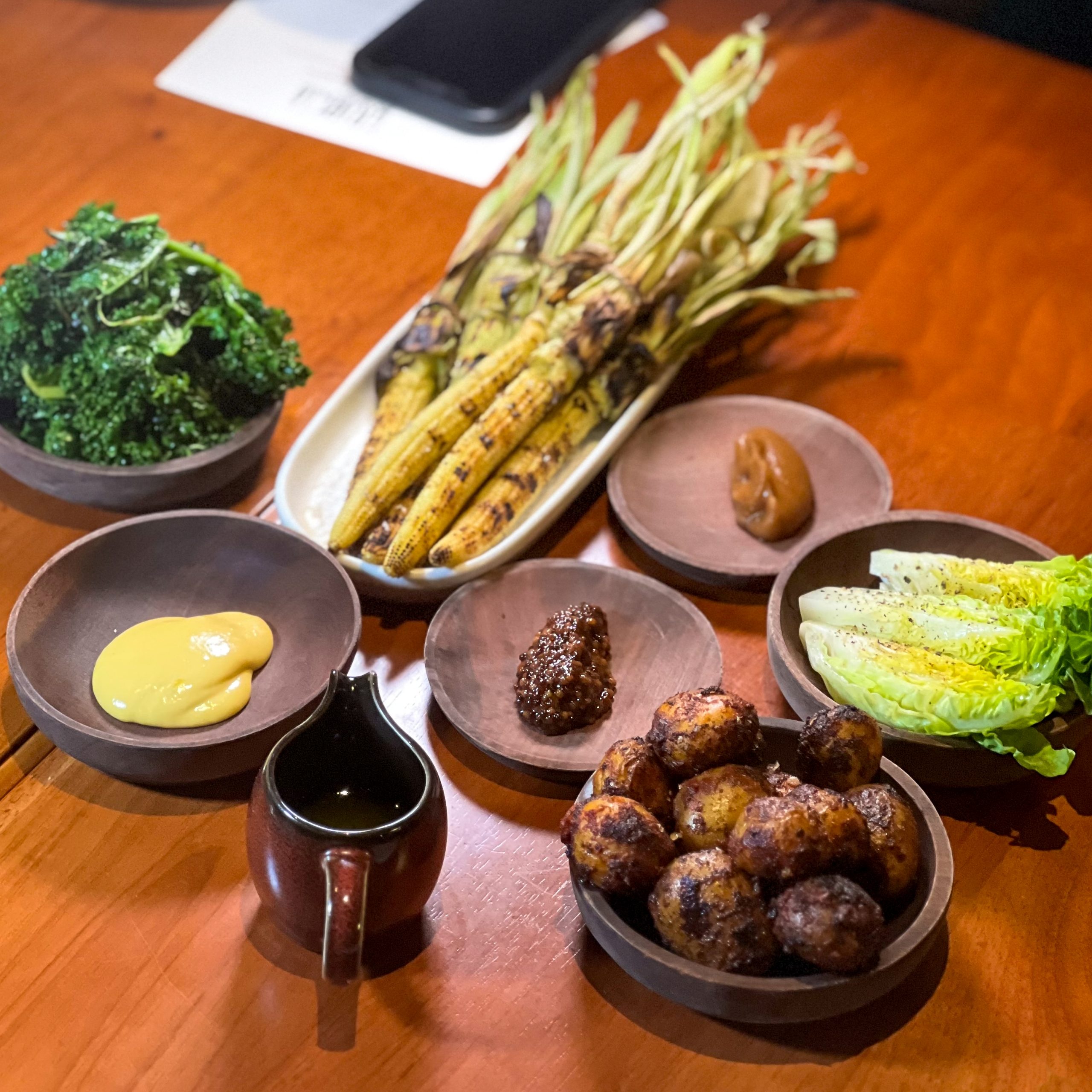 Next, it was finally time to tackle the Open Fire Grill section, which commenced with an rustic-looking array of sides, including Roasted Potatoes (S$10), Charcoal Grilled Baby Corn (S$10) with brown butter sabayon, and some seriously addictive Sautéed Kale (S$12) tossed in a mildly sweet white balsamico, which left me pleasantly surprised.