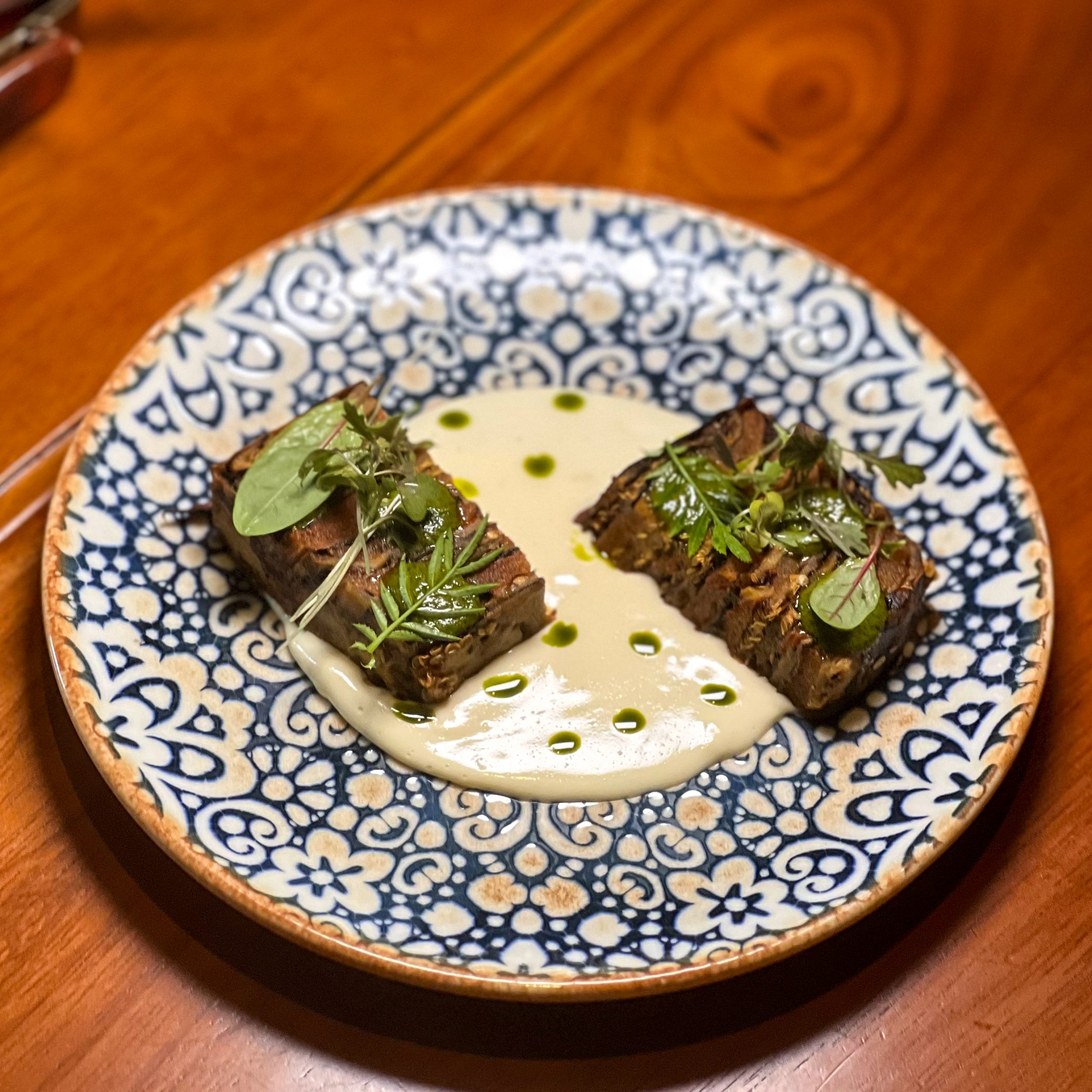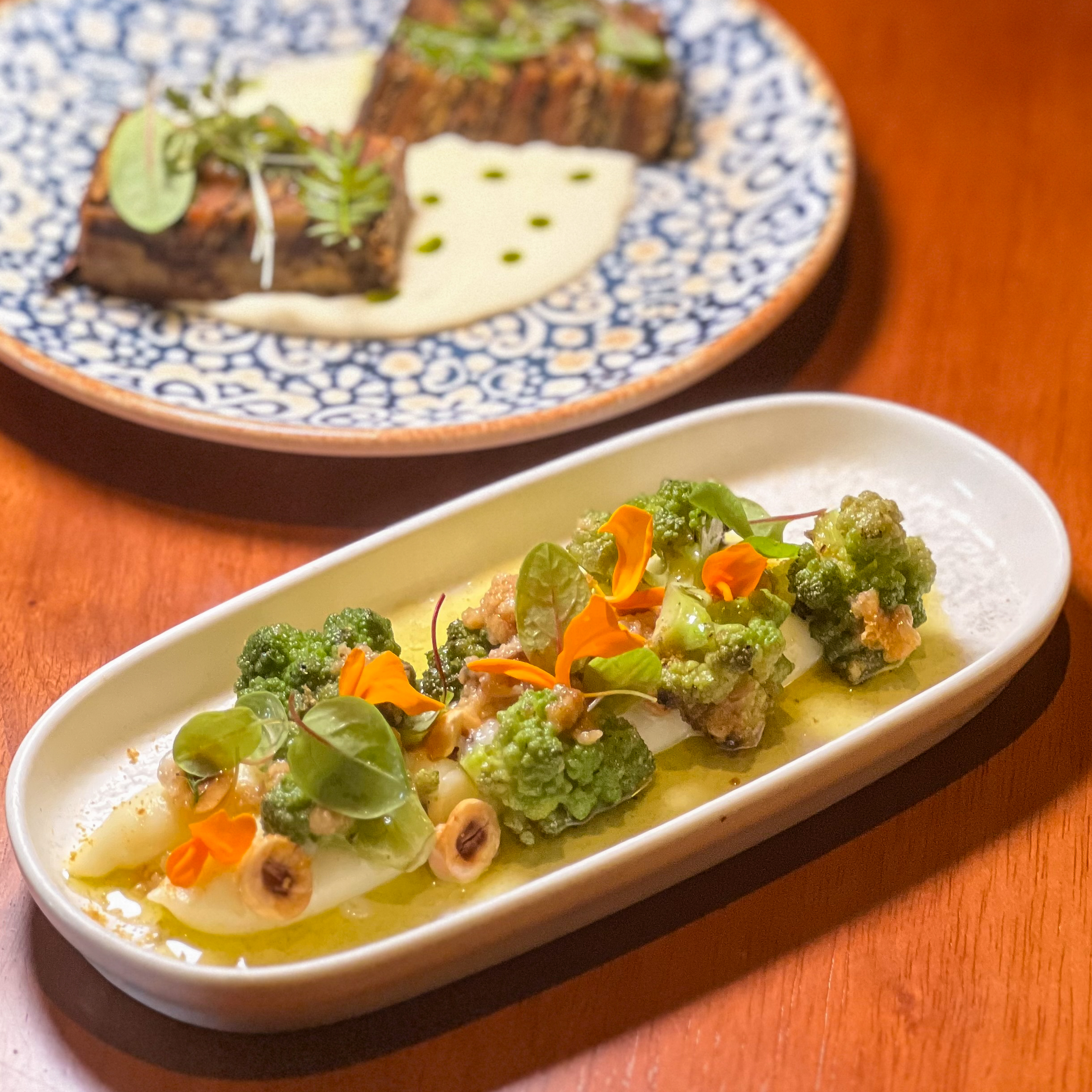 The restaurant itself boasts an atmosphere that is cosy and inviting, yet elegant, with warm wood finishes, plush leather seats, and an open kitchen with a custom-made charcoal grill. Pretty ideal for both intimate dates and chill nights out with friends!
