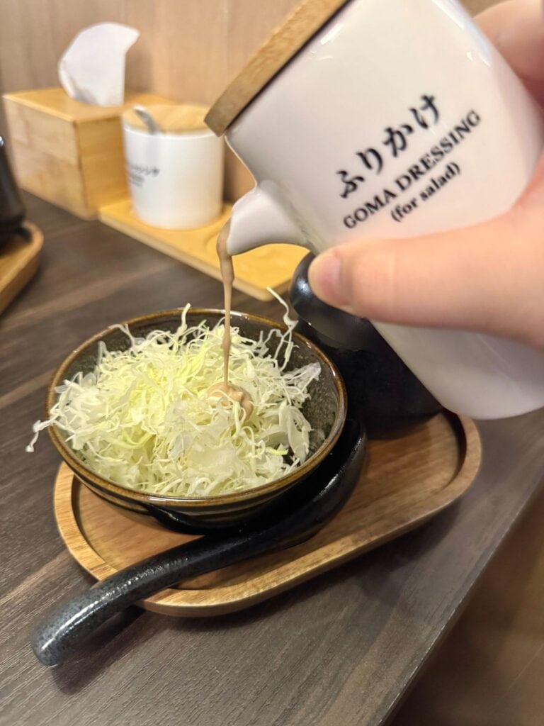 If your appetite is as huge as mine, you’ll be glad to know that your rice, cabbage and miso soup are all refillable.