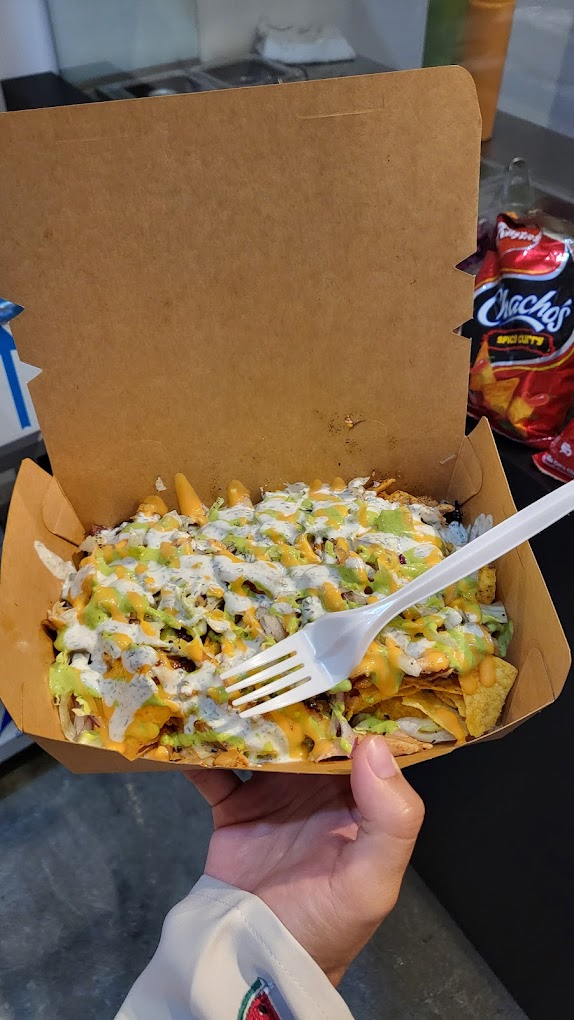 Next, imagine loaded fries, but with all the ingredients you’d find in a kebab. There you go, you’ve got the Donner Teller.