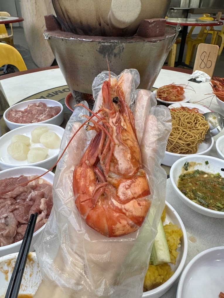 You won’t find any yong tau foo or pig leg rice here though, just bubbling pots of prawns cooked over charcoal.
