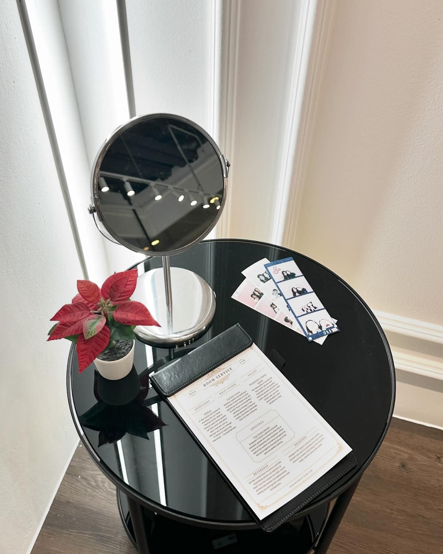 You’ll get to select your desired theme through a ‘room service’ menu, before touching up your makeup and hair at the vanity counters. Yes, there are hair styling tools provided, in case you’re wondering.
