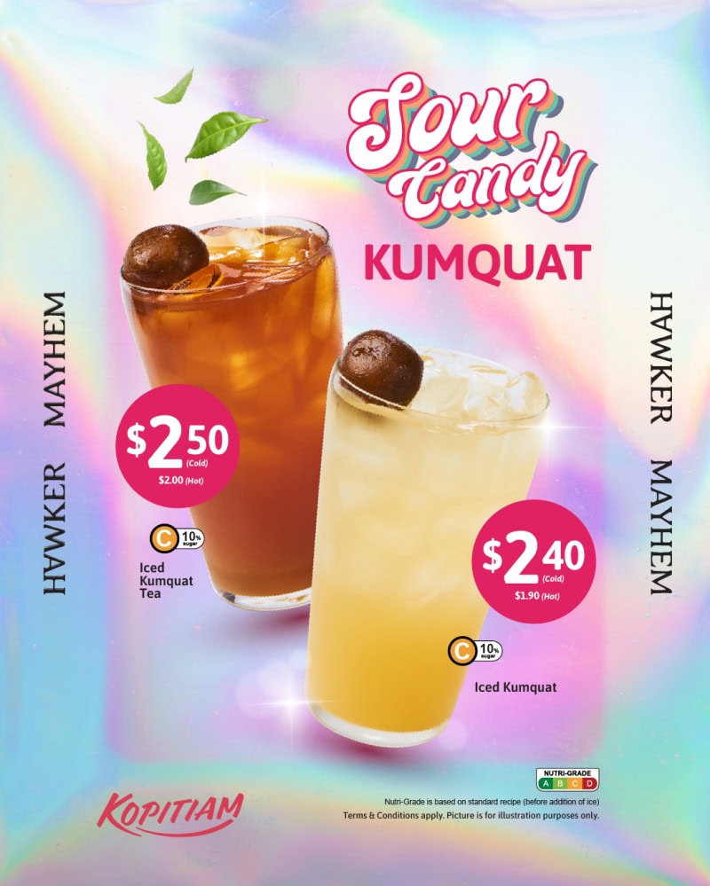 Finally, wash them down with Kopi Kiosk’s zesty Sour Candy Kumquat drink, available only at selected Kopitiam outlets from 15 May 2025.