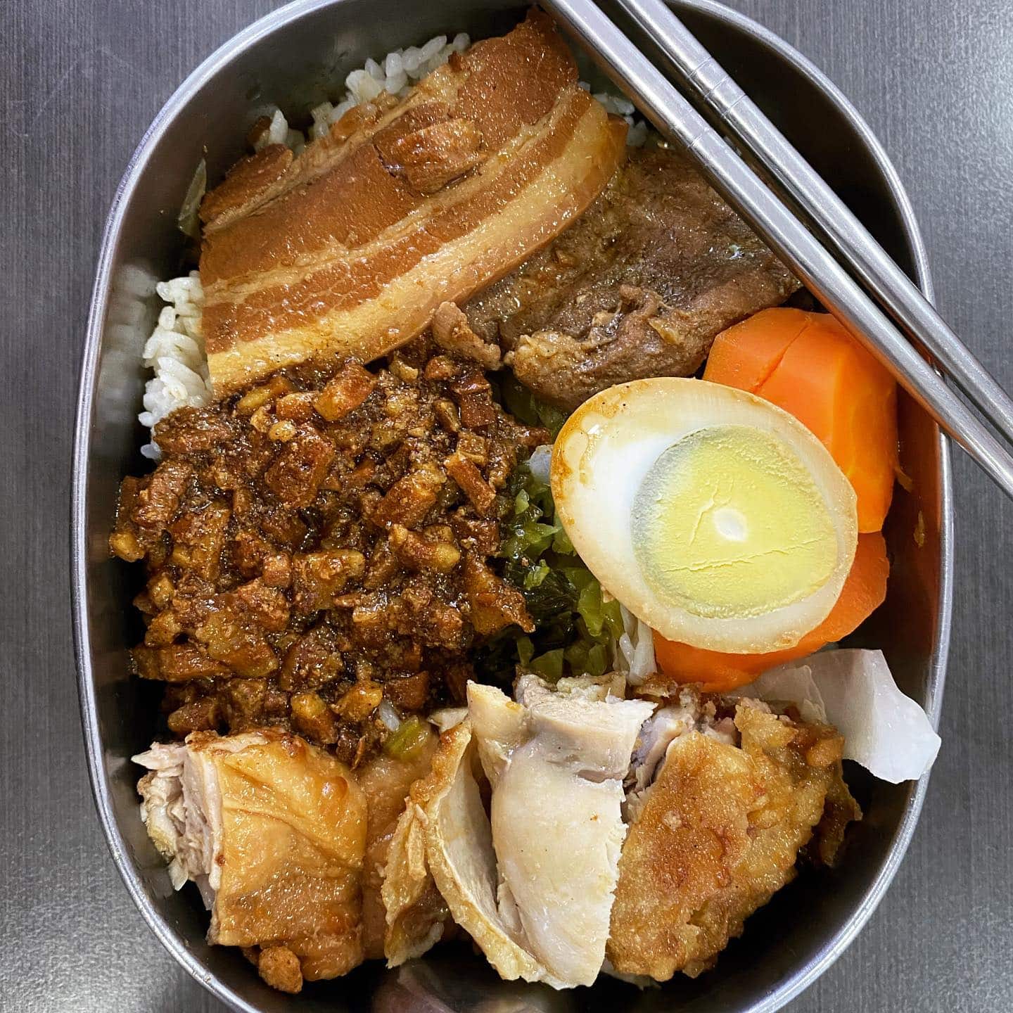 Head straight for the selection of bento (from S$5.50 for small) served in old-school tin lunchboxes. The signature Braised Pork (lu rou fan), which boasts tender, flavourful, and not-too-oily minced pork, is a must-order.