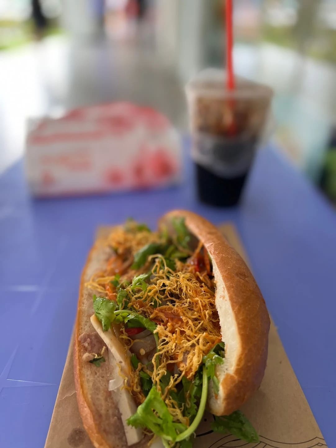 You can have your banh mi on the spot at the low plastic tables and chairs unique to Vietnam outside the store, but seating is very limited, so you’re better off getting your food (and Vietnamese coffee) to go!