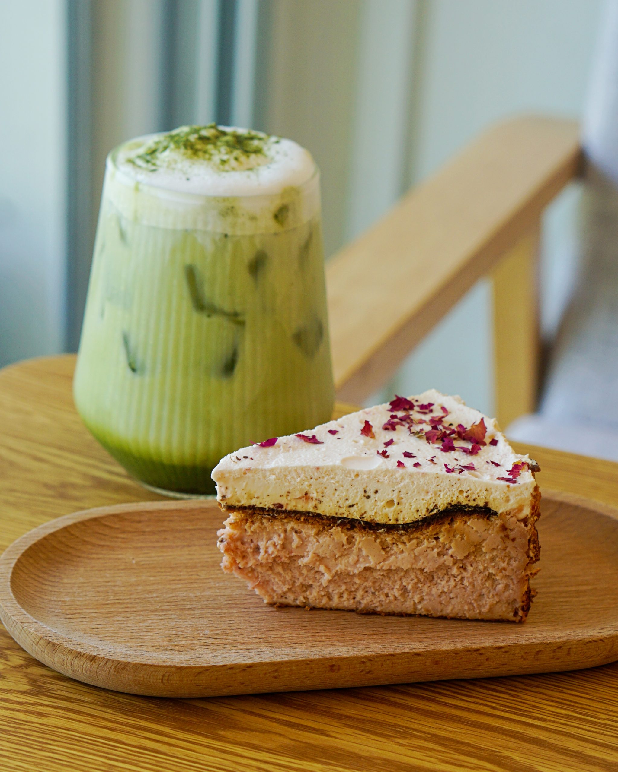 Basque burnt cheesecake is layered with cream and a sprinkling of dried rose petals — kinda like the layered cakes you find in Korean cafes.