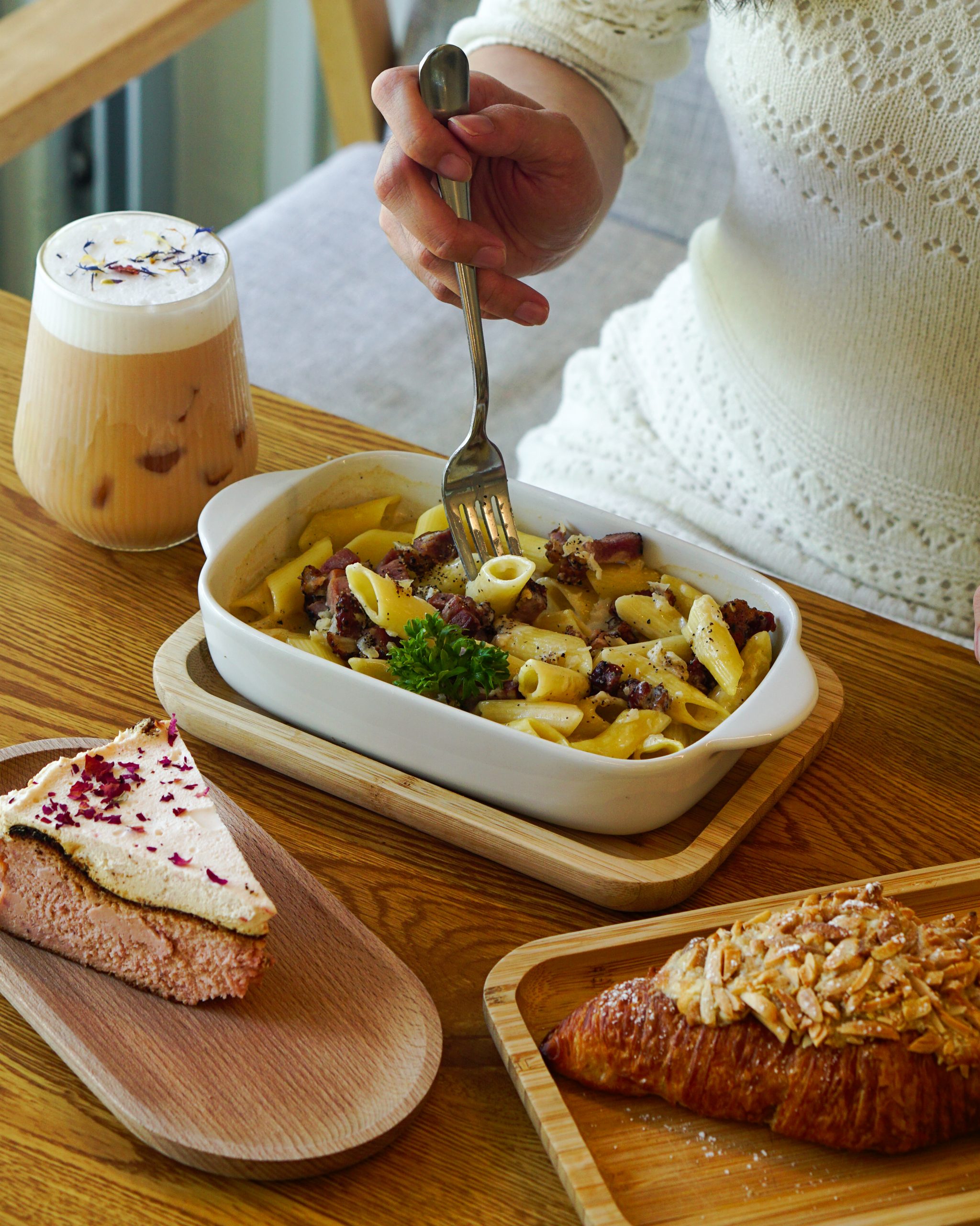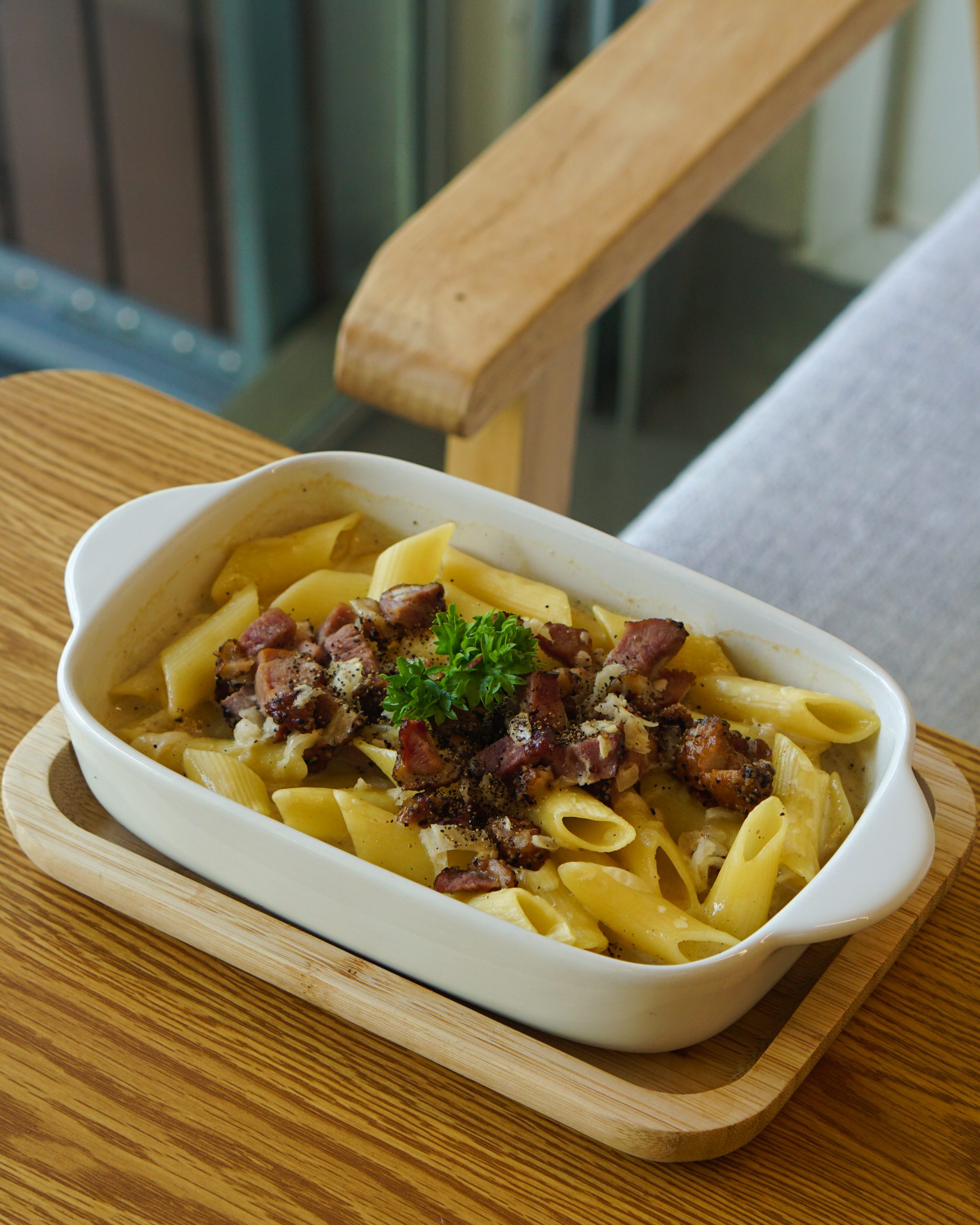 Although most visit for desserts, there are several pasta, baked rice, and savoury bites on the menu, such as the popular Smoked Duck Alfredo Pasta (S$11.90), a creamy, peppery, and ultra-comforting main.