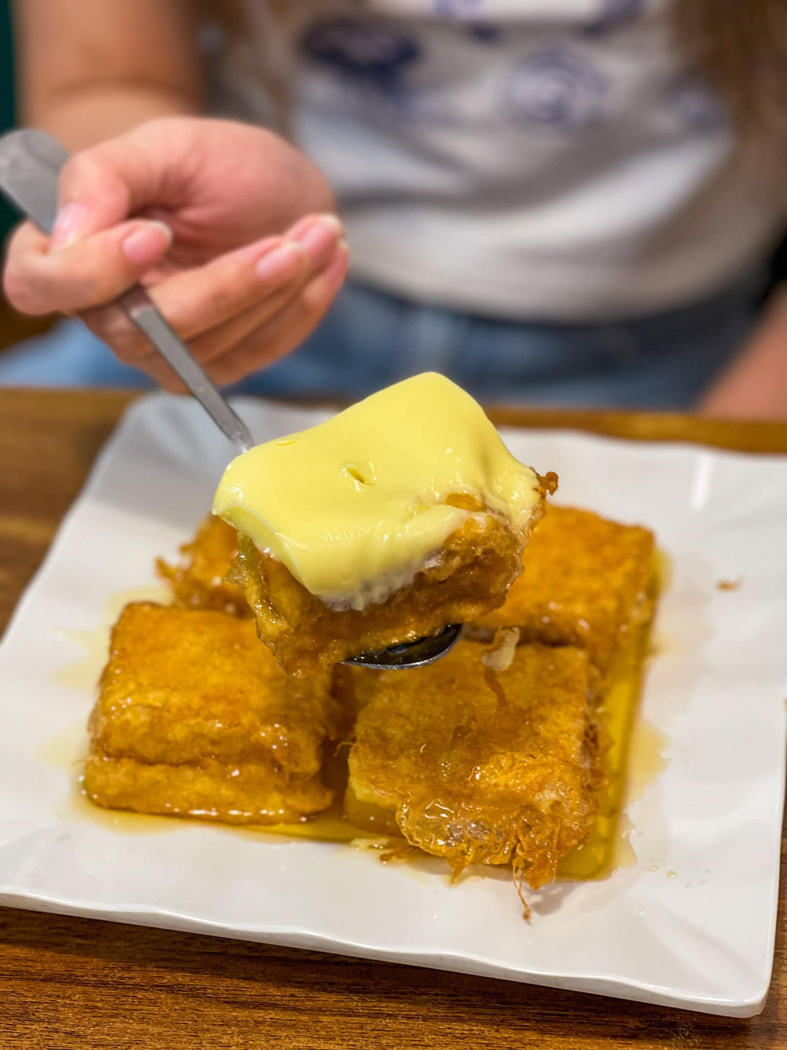 Another cha chaan teng classic that simply cannot be missed is the French Toast (S$4.50). Unlike regular french toast, the ones served here come with a surprise centre — peanut butter!