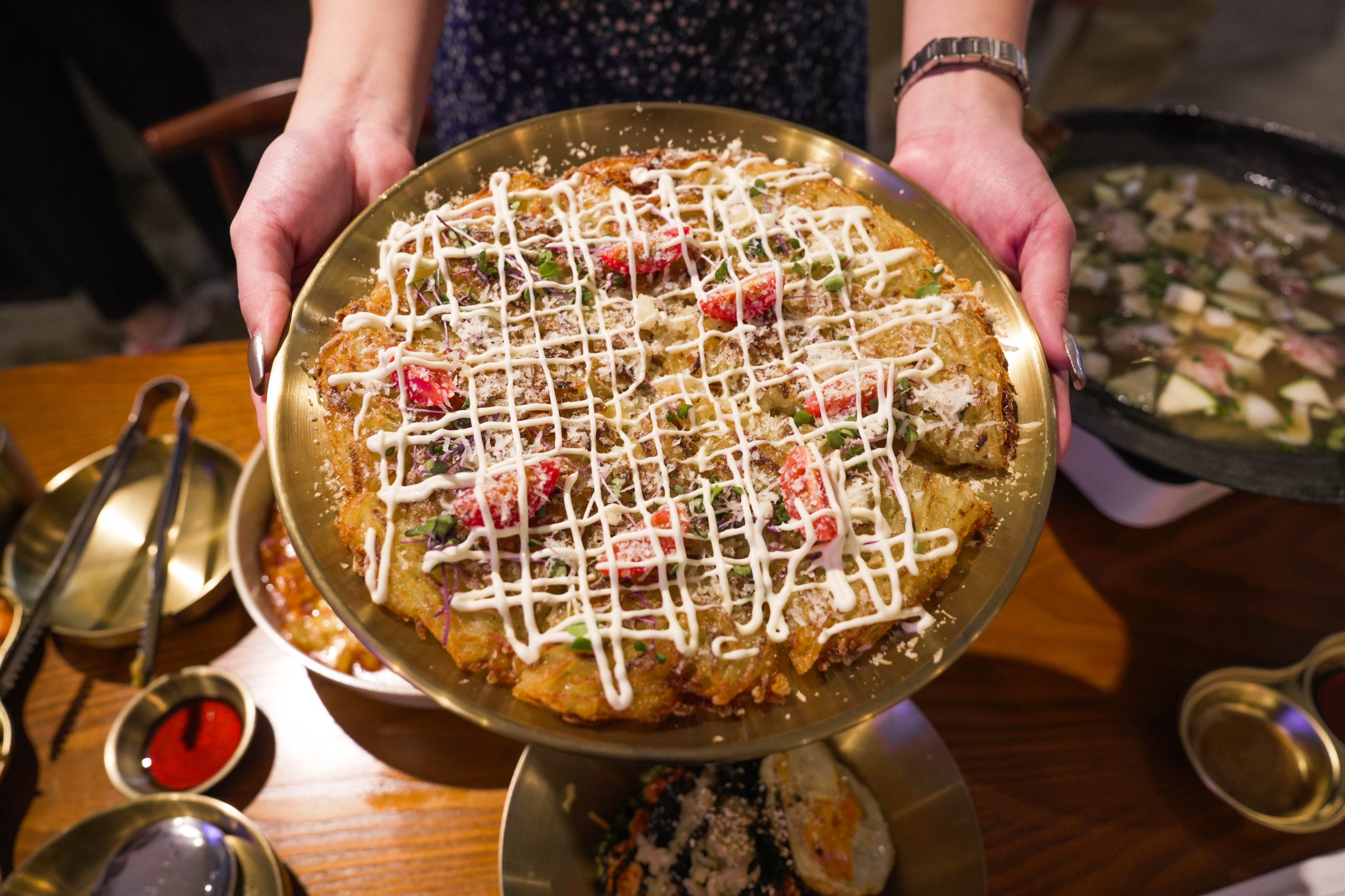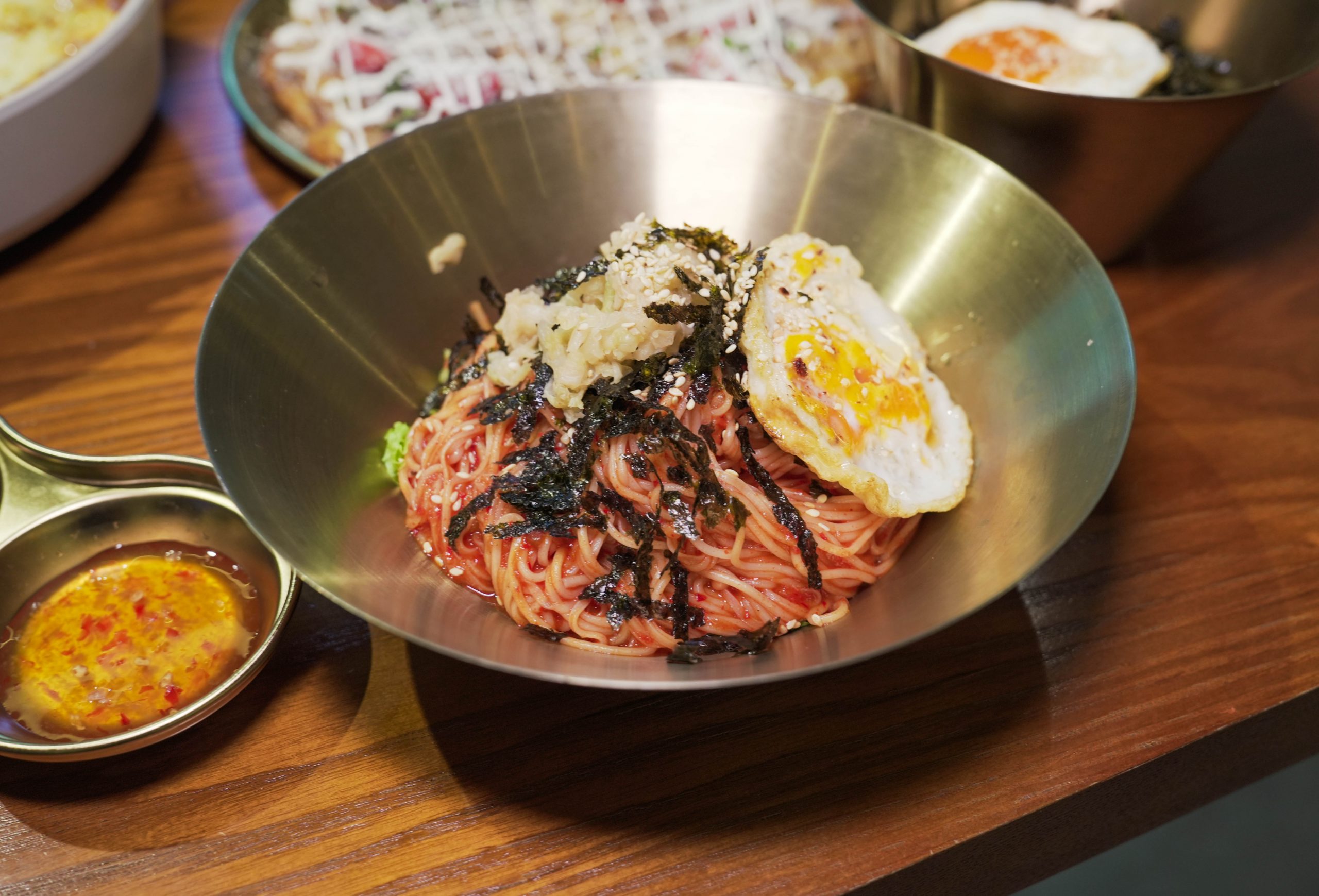 I personally prefer the pancake without the mayo because the sauce takes centre stage flavour-wise. The potato pancake also comes with a soy sauce and vinegar dipping sauce, which paired better with the pancake. Don’t forget to slap on a piece of kimchi for a sour and spicy little kick.