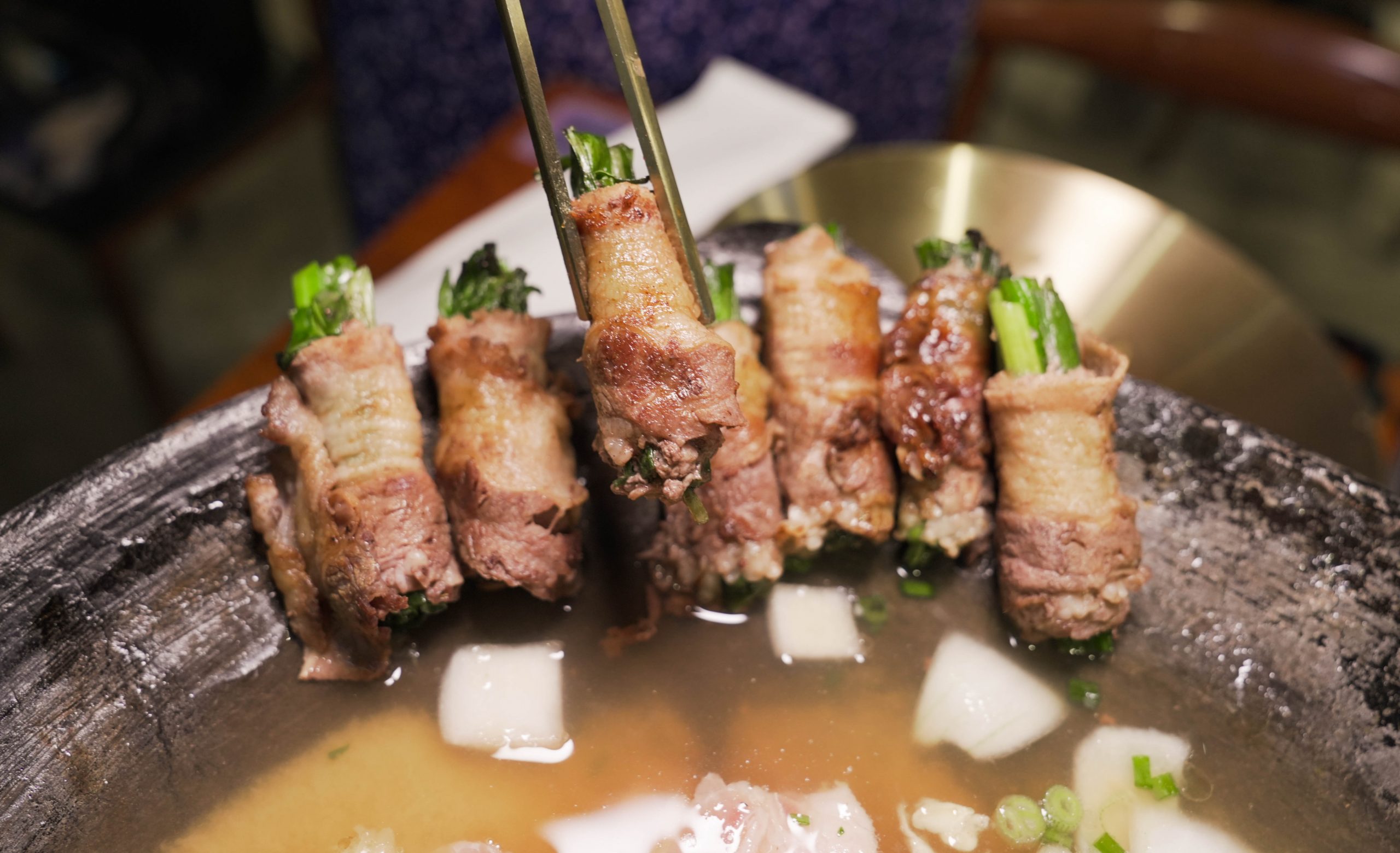 You’ll also be served three different dipping sauces to pair with your juicy meats — Yuzu Soy, Sesame Sauce, and Thai Chilli. It’s hard to pick which sauce paired best with the meat rolls because they all paired brilliantly with the meat and spring onions. But, my personal preference was the yuzu soy sauce which was sweet and slightly tangy.