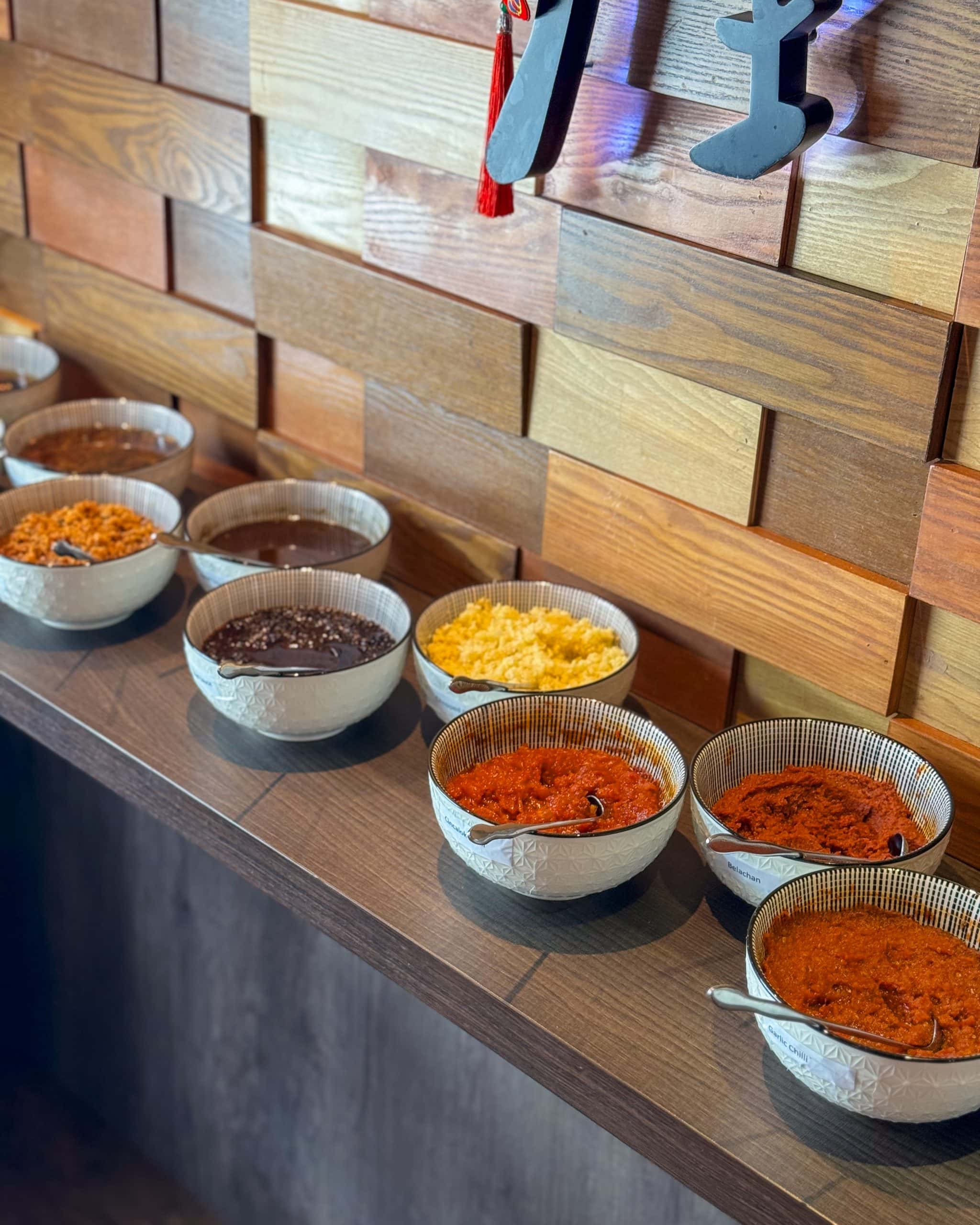 Take your pick from the display before hitting up the DIY sauce station, where you’ll find the usual suspects like fresh shallots, beef sauce, chopped garlic, light soya sauce, peanut sesame paste, garlic chilli, and of course, rice.