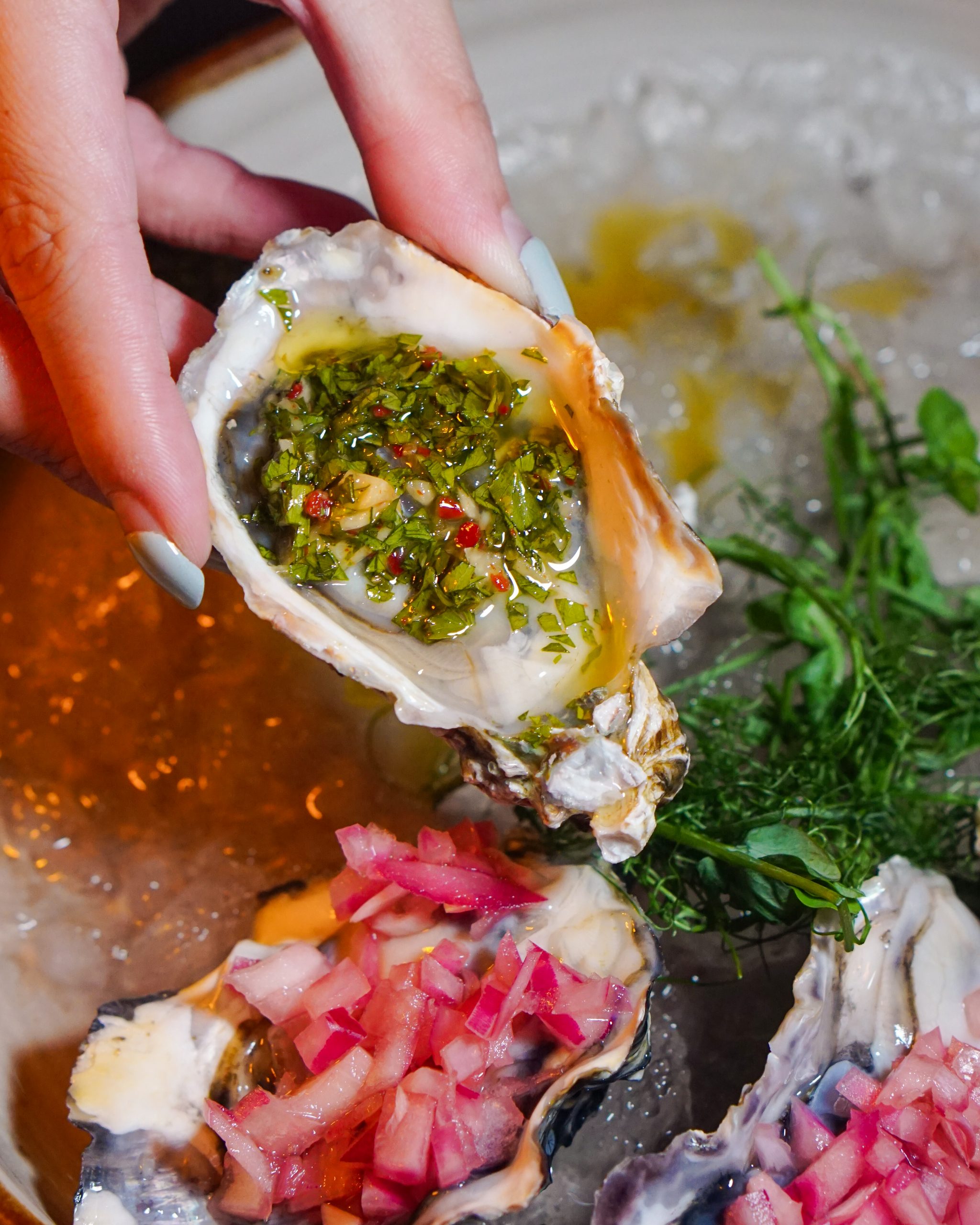 It’s hard to go wrong with the first two, but the chimichurri — zesty, garlicky, and herbaceous— was extra slurp-worthy savoured atop juicy oysters.