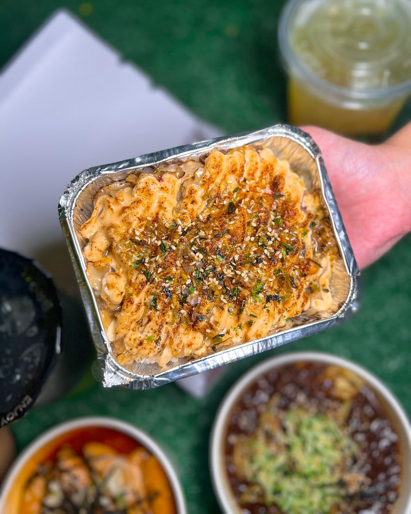 Fans of Japanese cuisine, look no further than Detako for baked sushi and takoyaki. We opted for the Mentaiko Hotate (S$15) sushi baked, comprising Japanese pearl rice topped with cooked scallops and a rich mentaiko sauce.