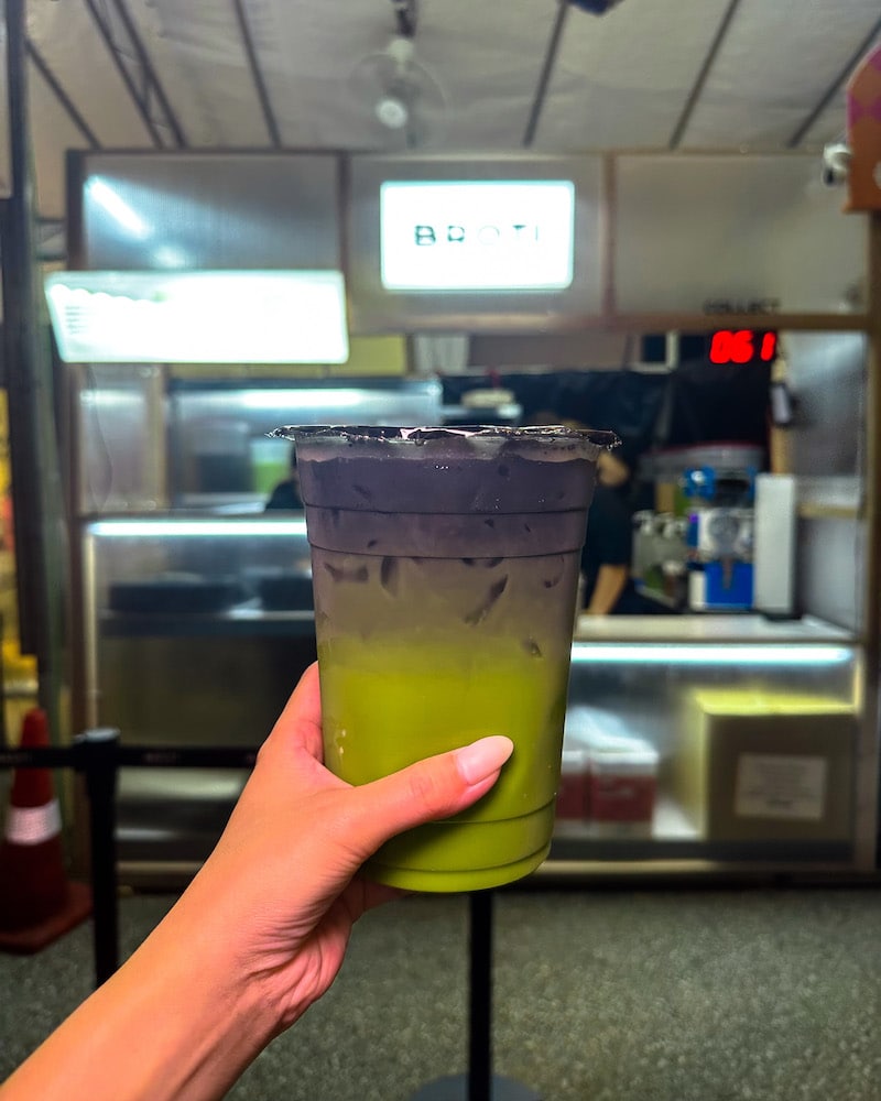 Feeling thirsty after all that good food? Choose from iced teas, sugarcane, and more. Interesting options include Charcoal Matcha (S$5.50) and Masala Milk Tea (S$6) from popular drink stall Broti!