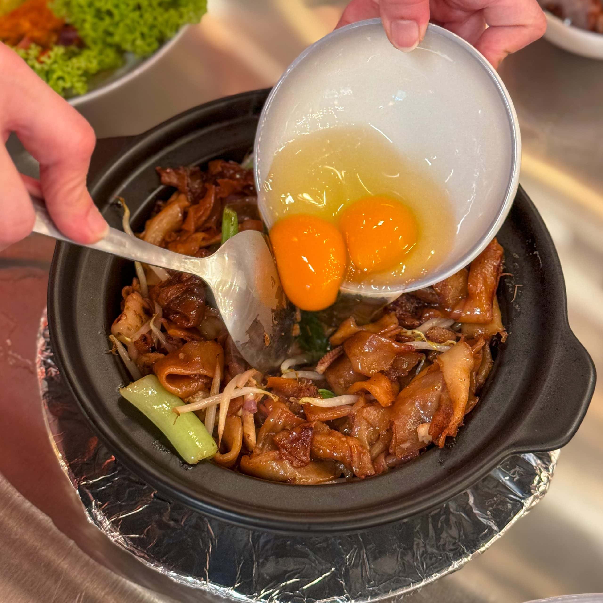 KEK is perhaps best known for their Moonlight Horfun, which has been given a new lease of life through the Sizzling Claypot Moonlight Horfun (S$15.80). Think seafood hor fun in a claypot, dressed with Chinese sausages, prawns, and sliced fish, topped off with two glistening moon-like raw eggs.