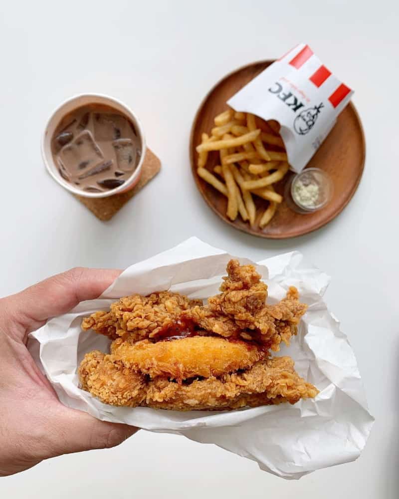 You can get the burger complete in a meal with the KFC Cheesy Zinger Double Down Meal (S$9.50) which comes with fries and a drink.