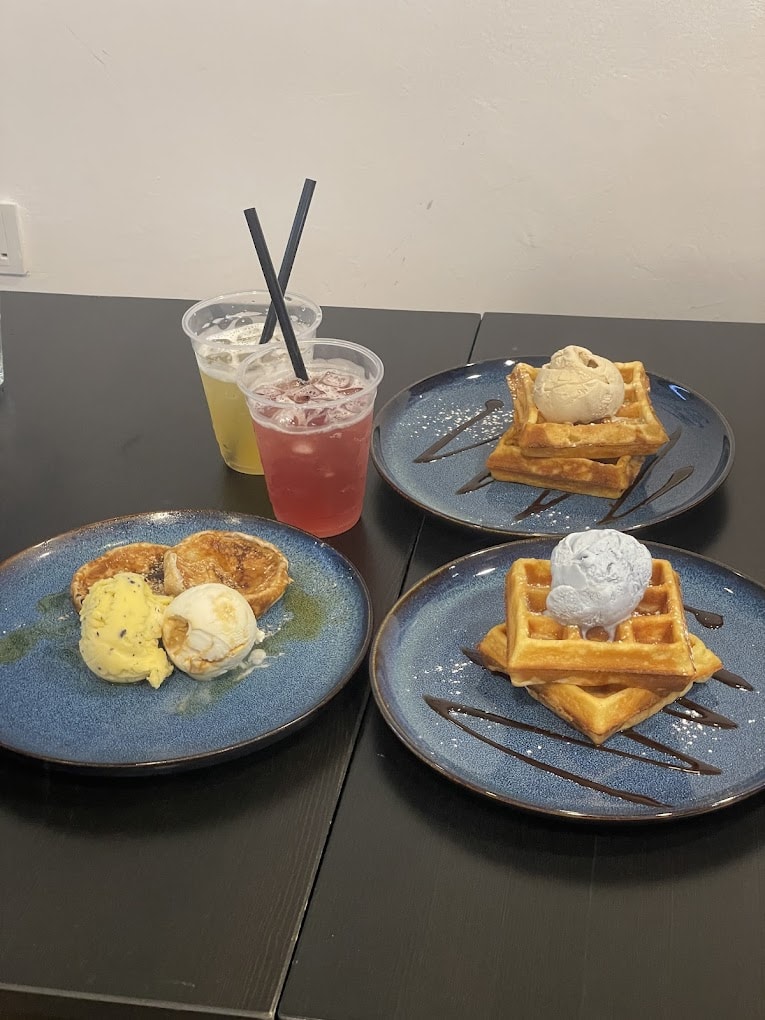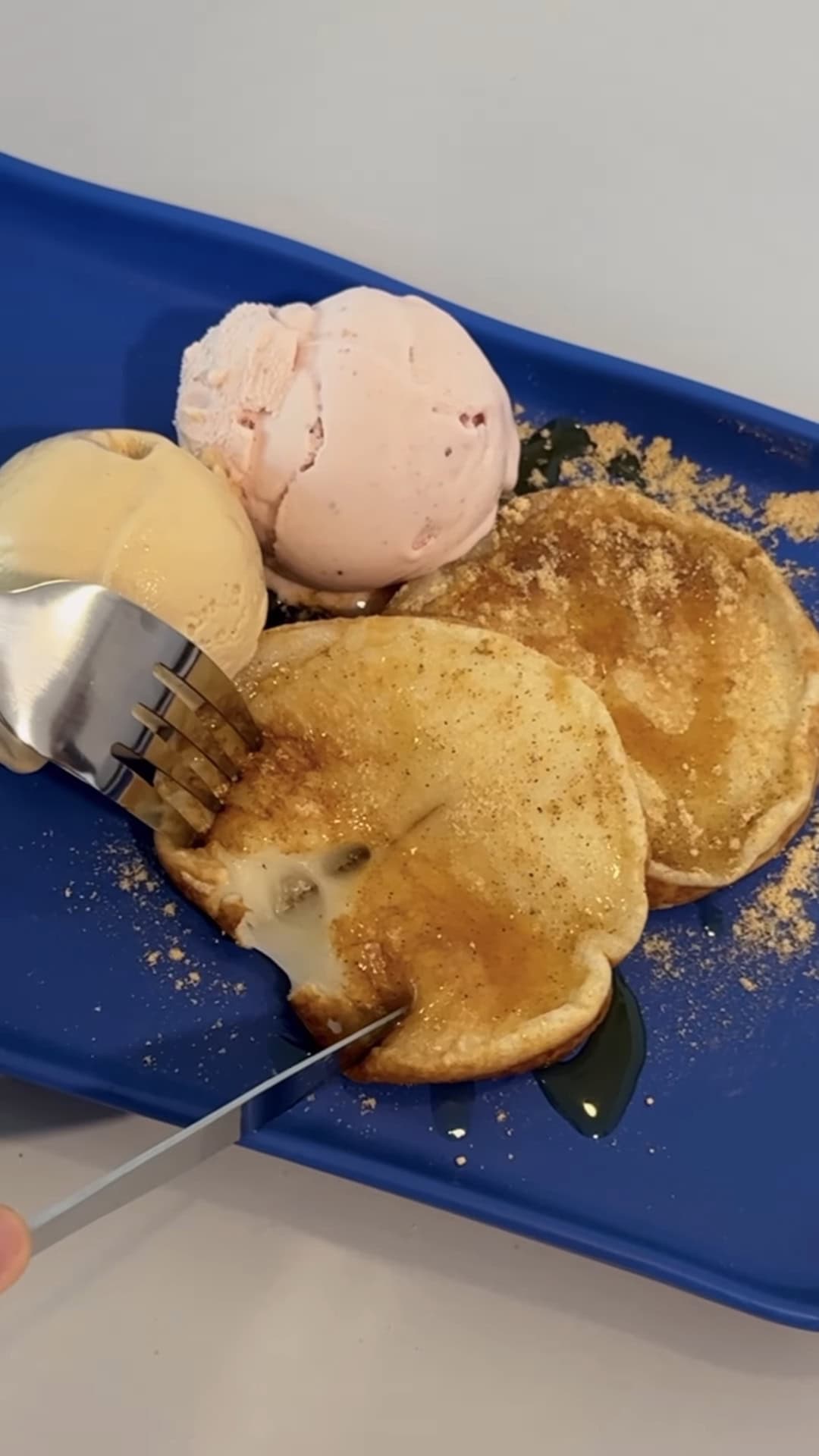 Pair your pancakes (or waffle) with a Single Scoop (S$4.50) of ice cream, including the likes of Strawberry Milk, Osmanthus Oolong, Tiramisu, and Blue Pea Lemongrass.