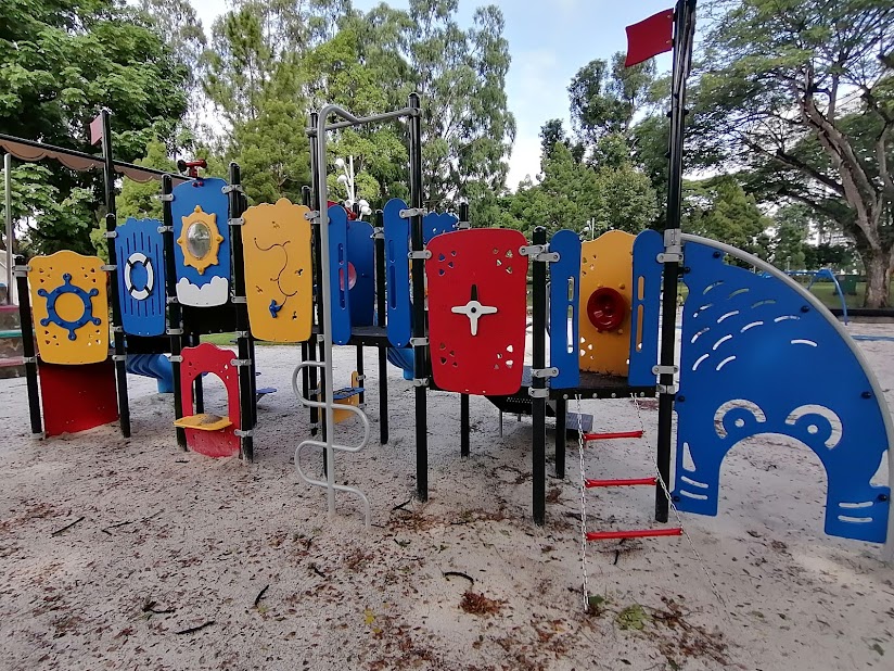 It’s all hands on deck at the Battleship Playground in Sembawang Park. This majestic maritime-themed playground pays tribute to Sembawang’s naval heritage. Modelled after a warship, the main play structure comes complete with propellers, turrets, an upper deck, and many other interesting elements to explore. Furthermore, the additional rope climbing structure and pendulum swings off to the side are sure to keep the little ones entertained.