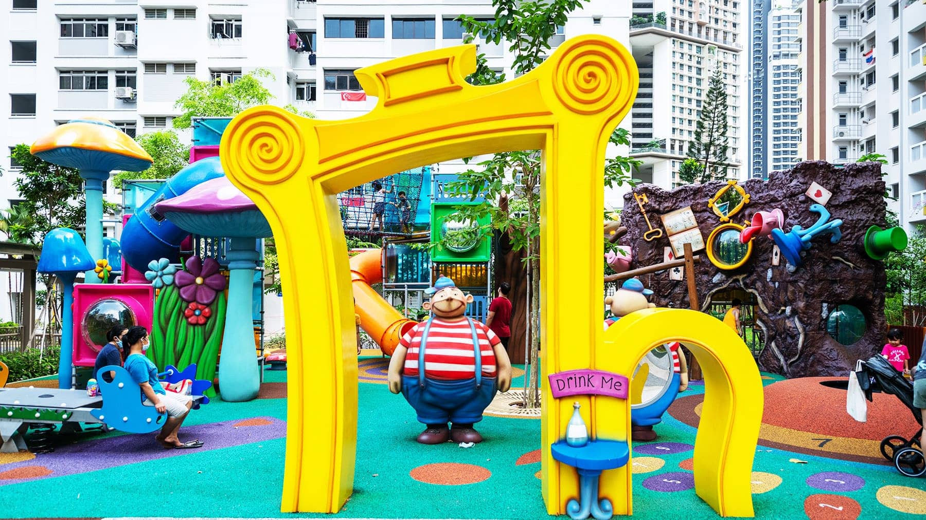Go down the rabbit hole into the world of Alice in Wonderland at the whimsical Wonderland Playground. This immersive neighbourhood playground boasts plenty of colourful play structures, like a Clock Trampoline, Mushroom Adventure, and a Magical Tree dotted with references from the story.