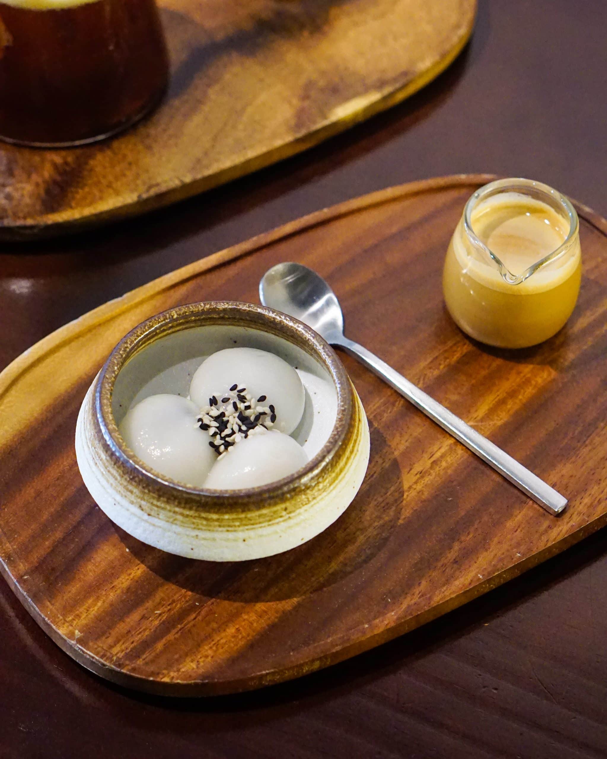 Although more of a dessert than a drink, I’ve also got to give a shoutout to the Ah Bo Ling (S$7.50), black sesame tang yuan (glutinous rice balls) served with a shot of milk and espresso.