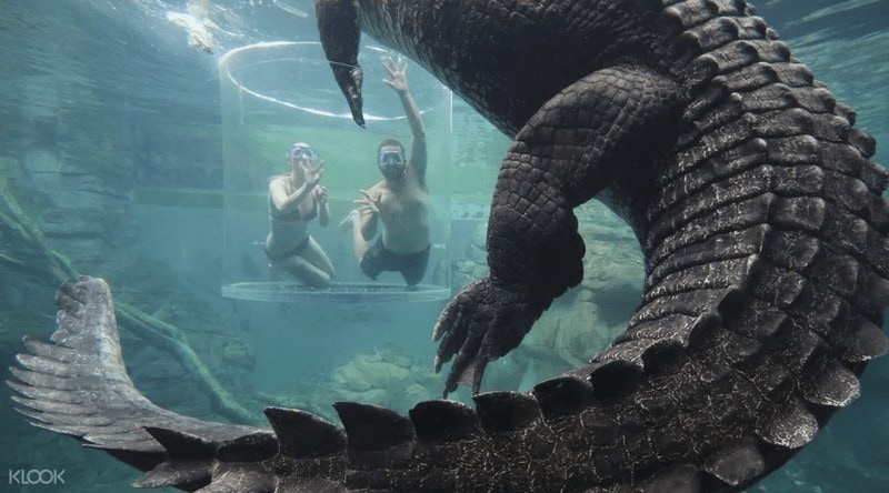 If you’ve never done a death-defying activity, this is the chance for you to come face to face with a massive saltwater crocodile. In the Crocosaurus Cove’s , you’ll step into a cylindrical cage that accommodates up to two, and be slowly lowered into the tank to come face to face with the giant reptile.