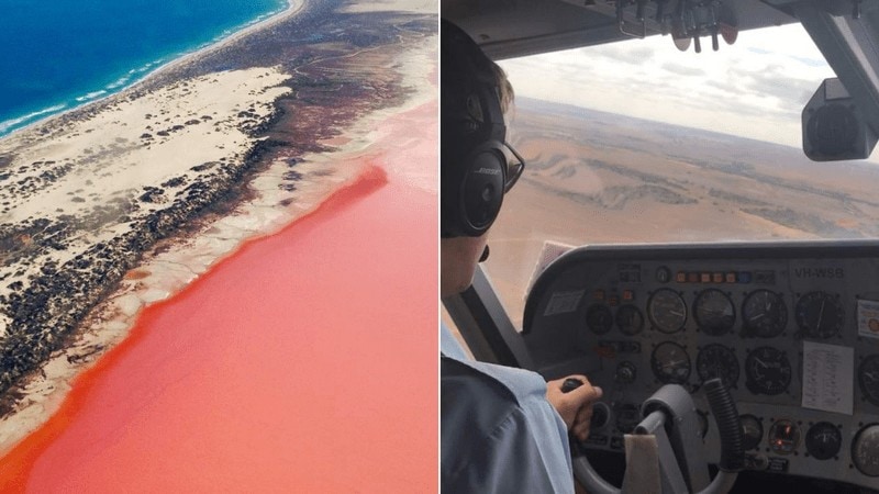 Scenic Flight over Hutt Lagoon (Pink Lake), Geraldton, Western Australia