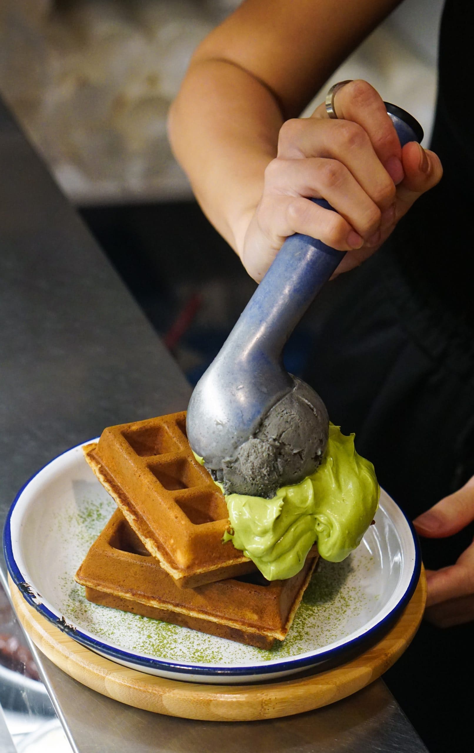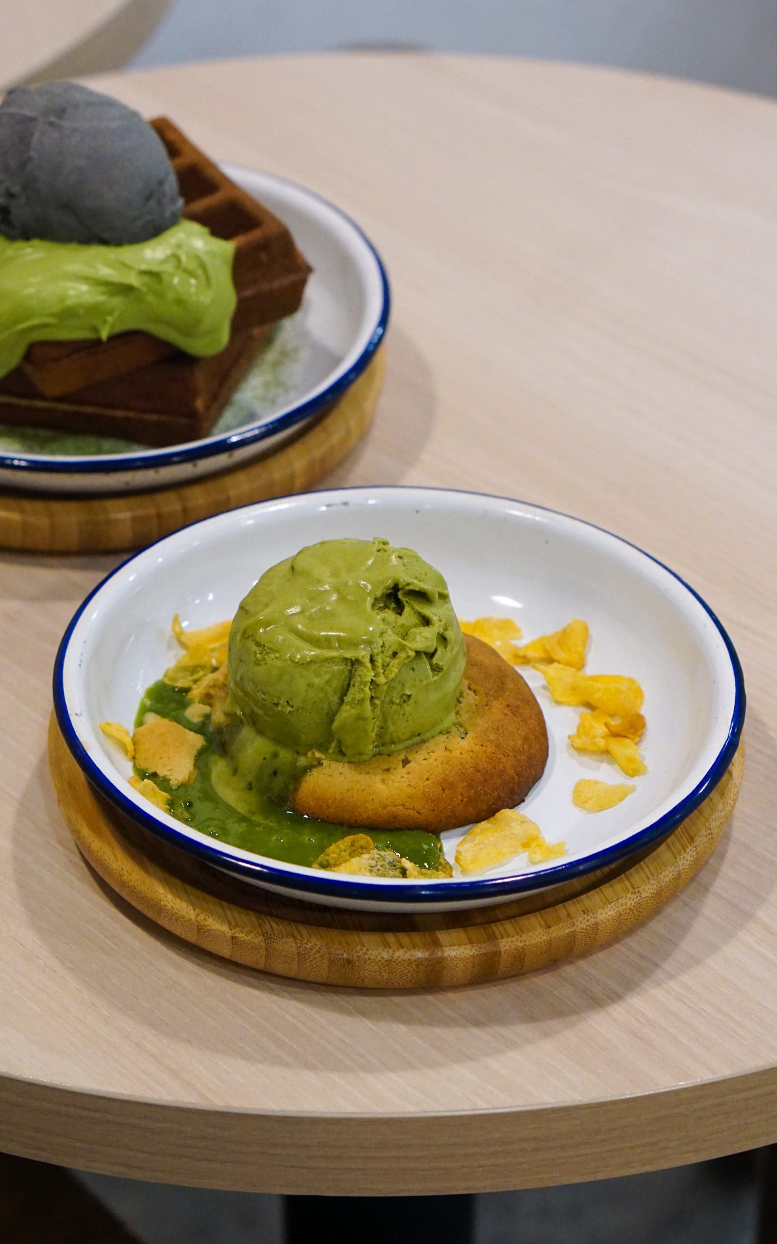 Choose for your waffles to be topped with either light, smooth, and airy Chocolate (S$8.50) or Matcha Lava (S$9) — we opted for the latter (obviously!) and topped it off with a scoop of Black Sesame (S$4.30) ice cream.