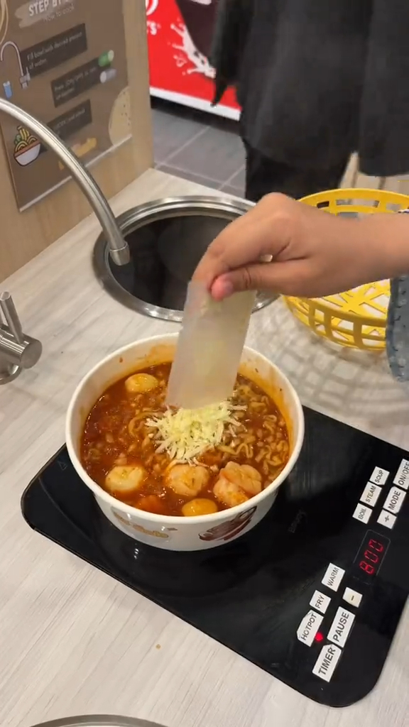 After choosing your ramen, head over to the selection of toppings, all of which are vacuum-sealed individually and priced from around S$1.16 (RM4), including the likes of kani crab chunks, lobster balls, cheese tofu, seaweed yuba, tteokbokki, kimchi, and mozzarella cheese.